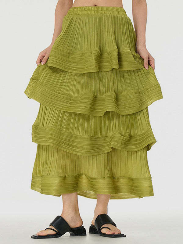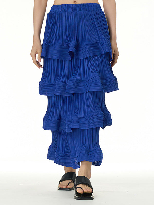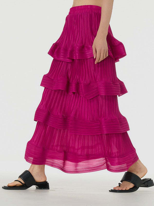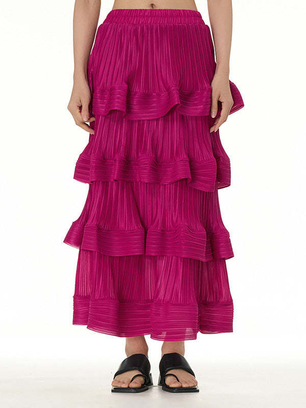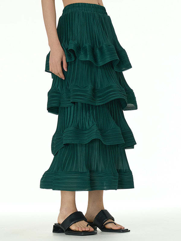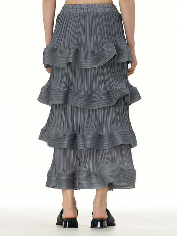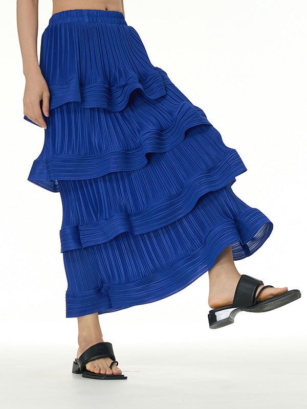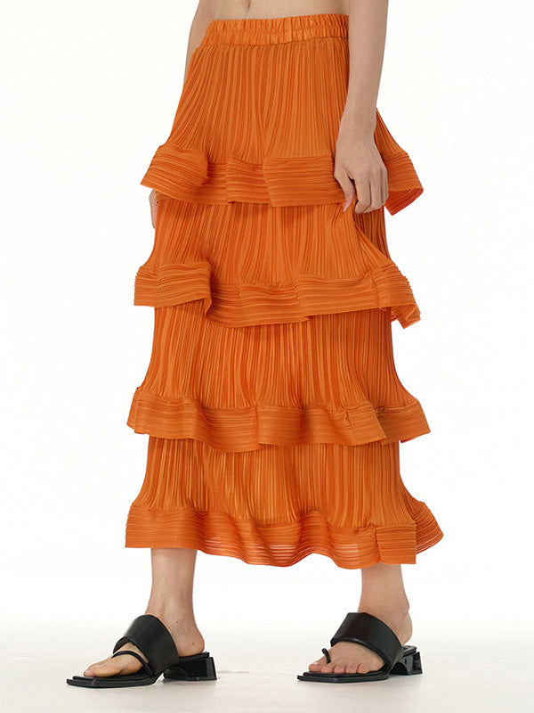 Loose Elasticity Layered Pleated Ruffled Solid Color Skirts Bottoms