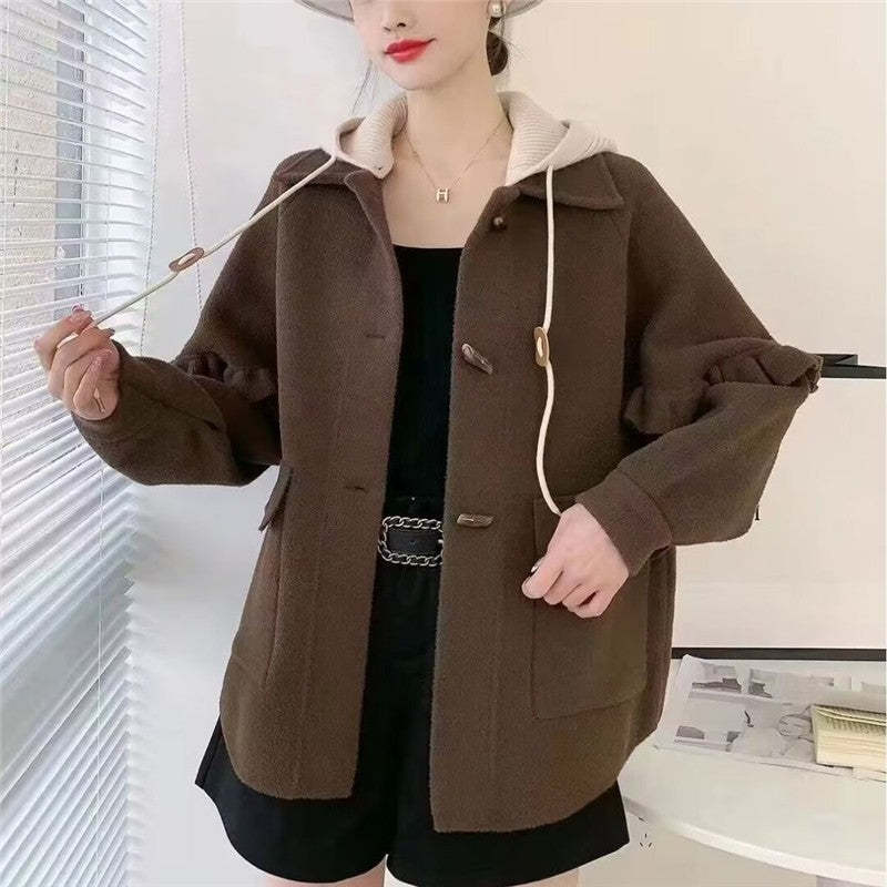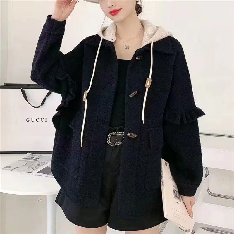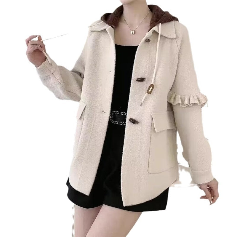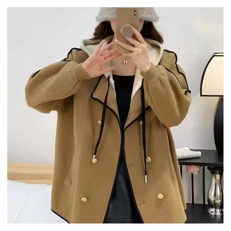 Feature:Drawstring,Hooded,Contrast Color,Lacy