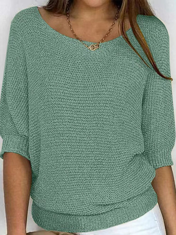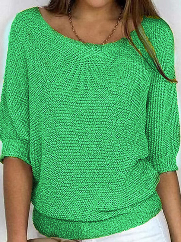 Loose Plus Size Solid Color Split-Joint Round-neck Sweater Tops