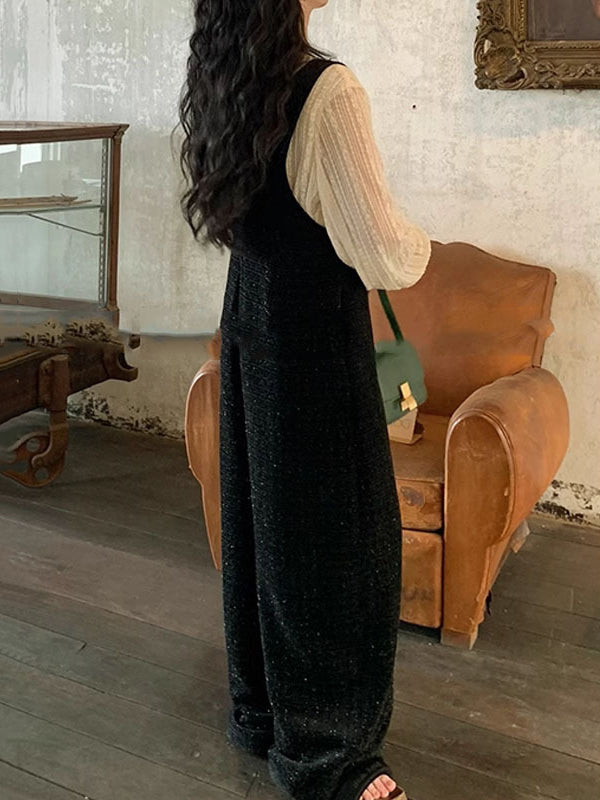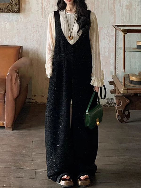 Loose Sleeveless Pockets Solid Color Collarless Overalls