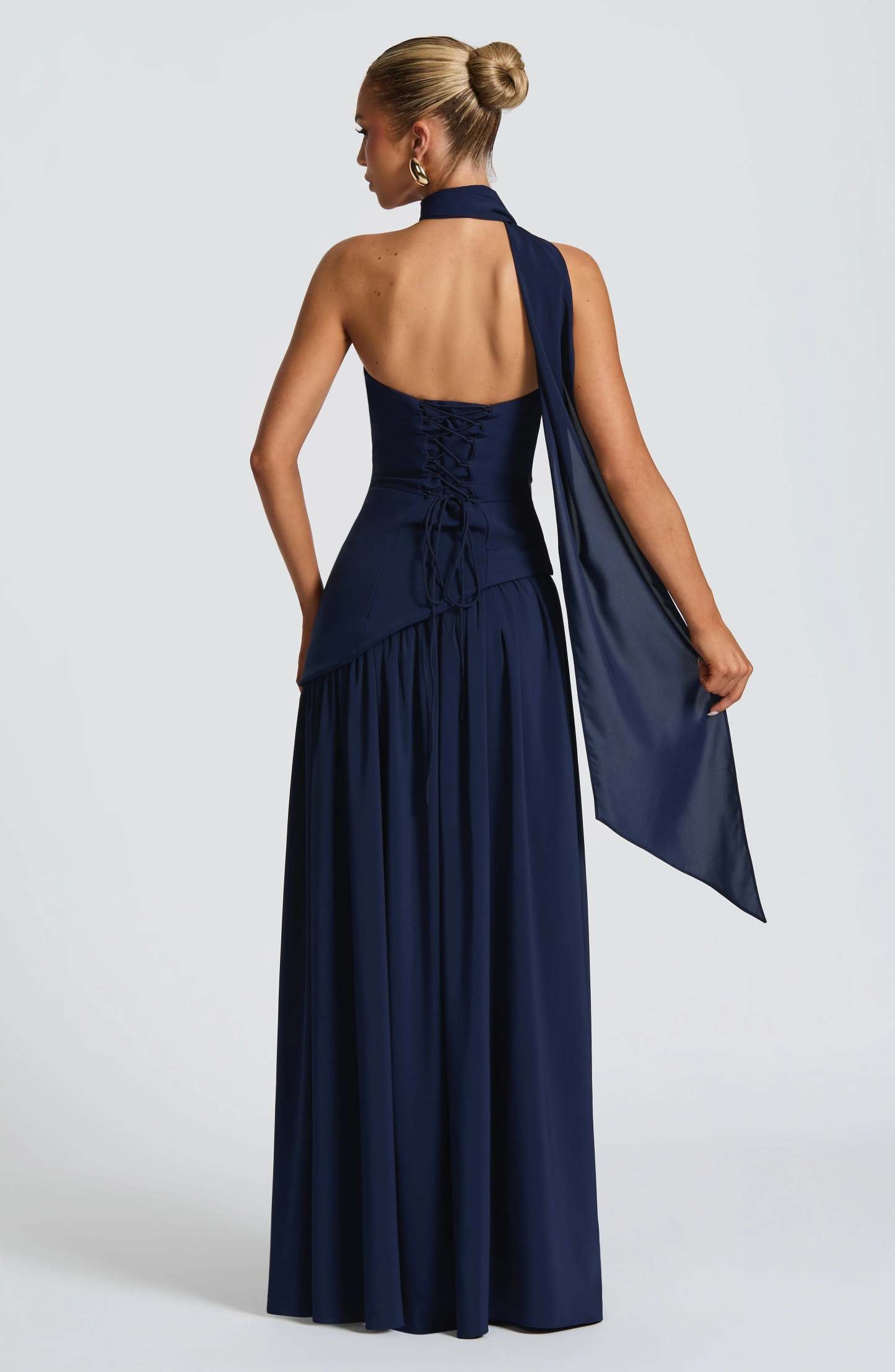 - Flowing Contrast: The gathered chiffon skirt and matching neck scarf add a touch of ethereal beauty.