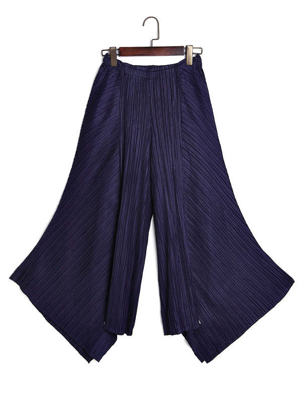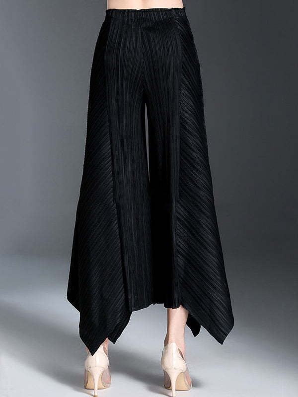 Original Loose Solid Color Irregular Pleated Wide Legs Pants