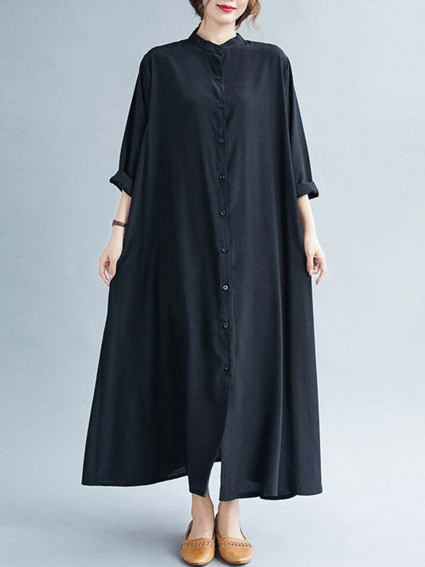 Original Solid Round-Neck Shirts Dress