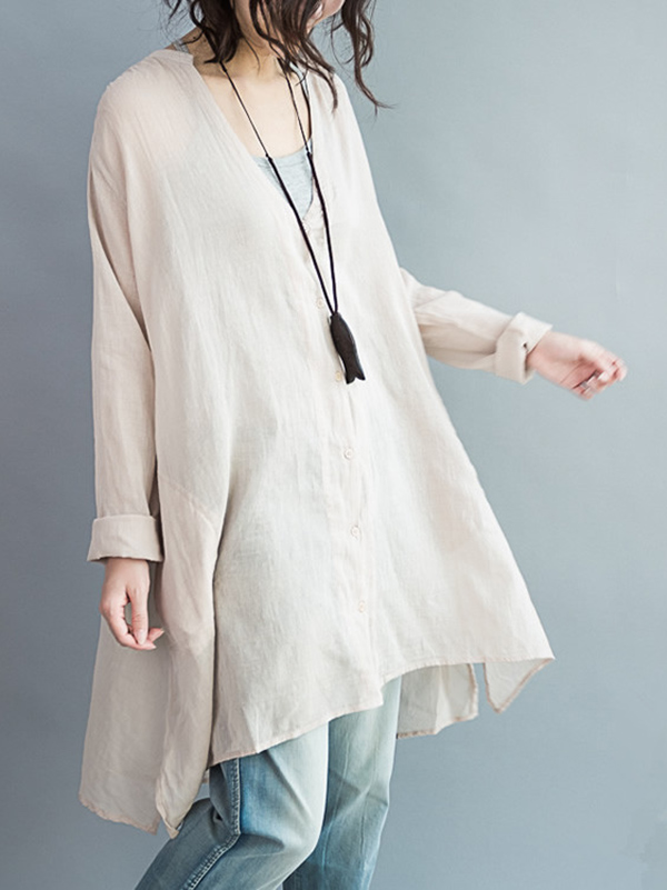 Original Solid Sun-Protection V-Neck Blouse Tops