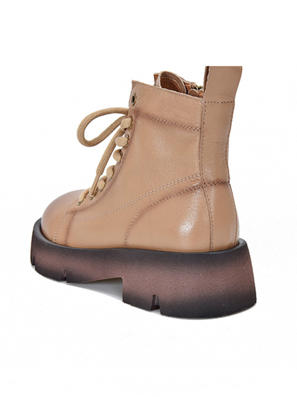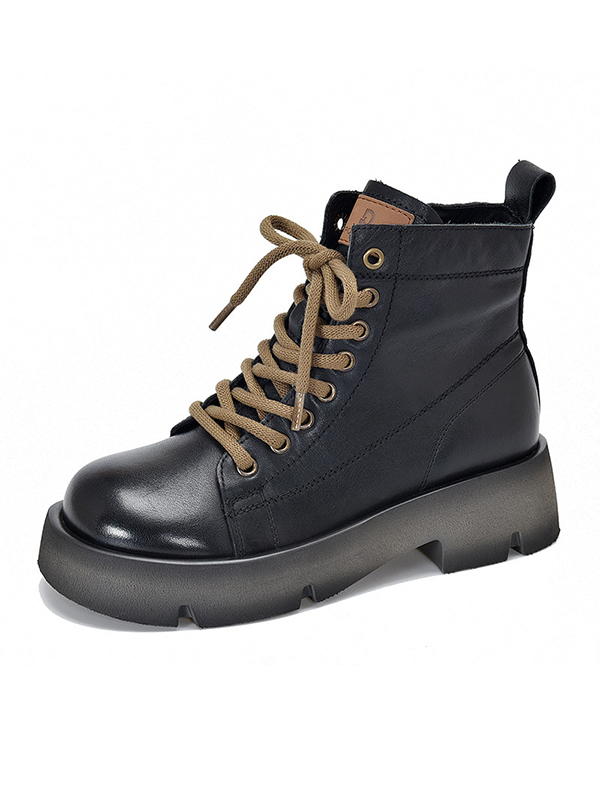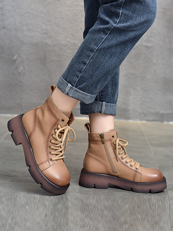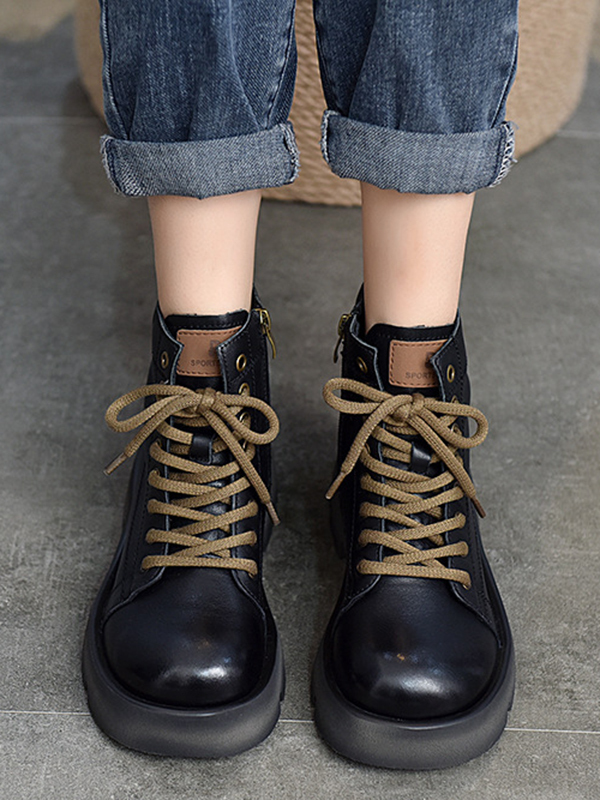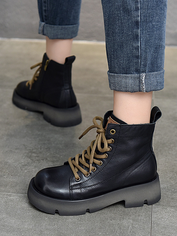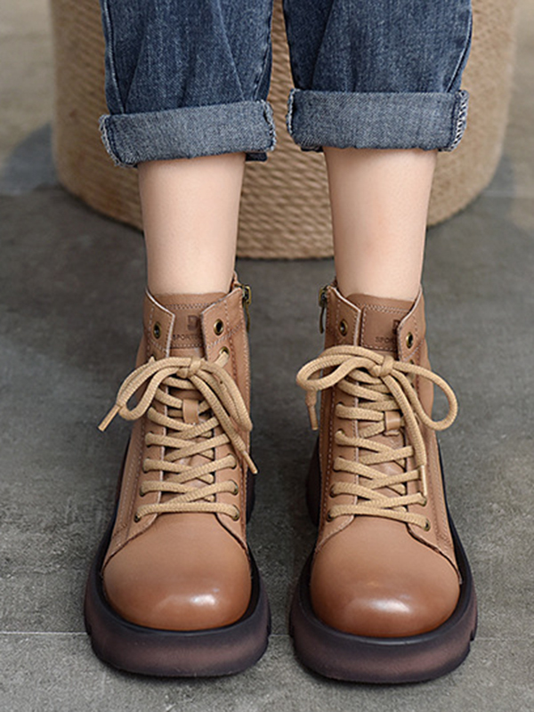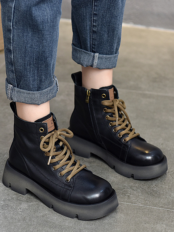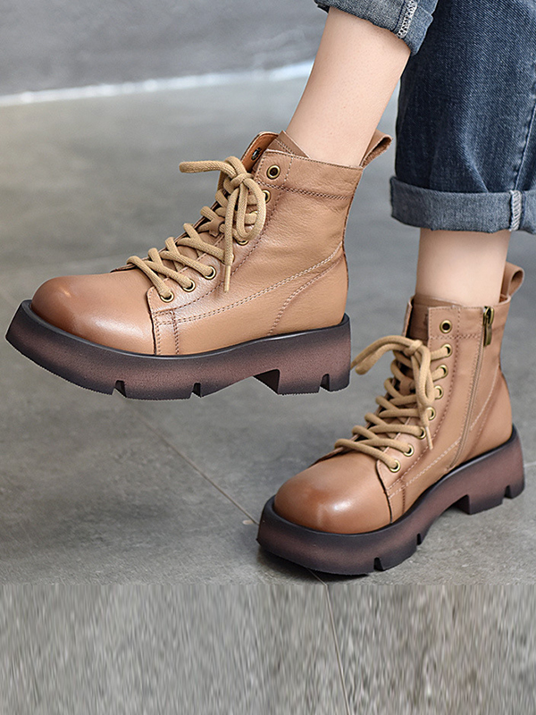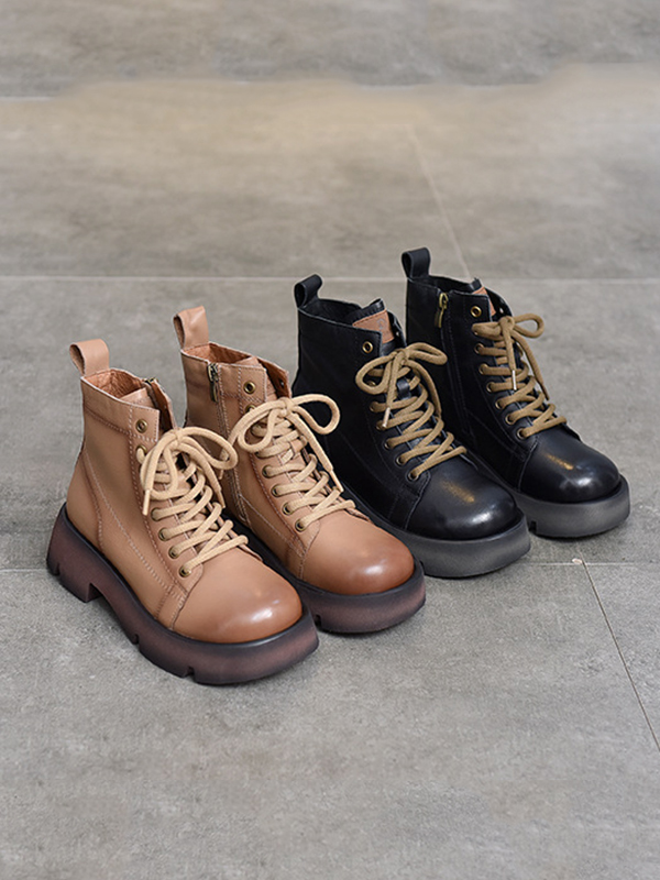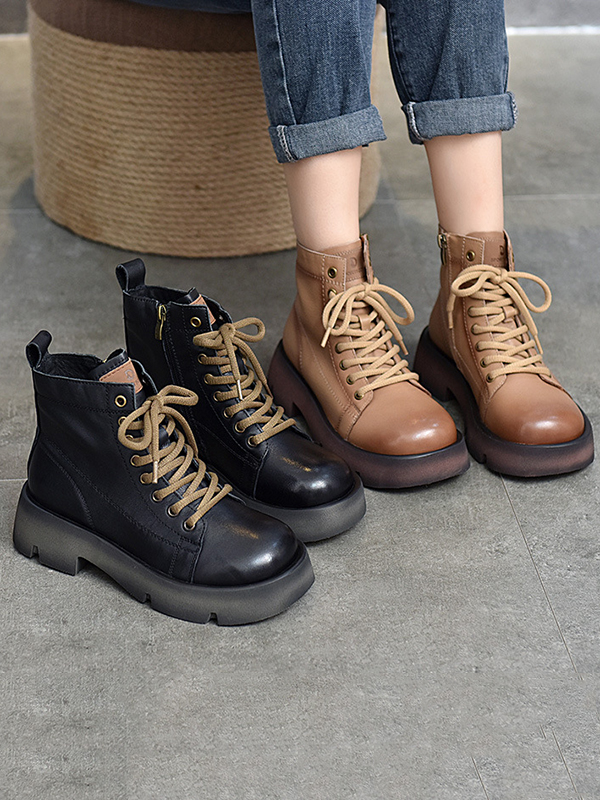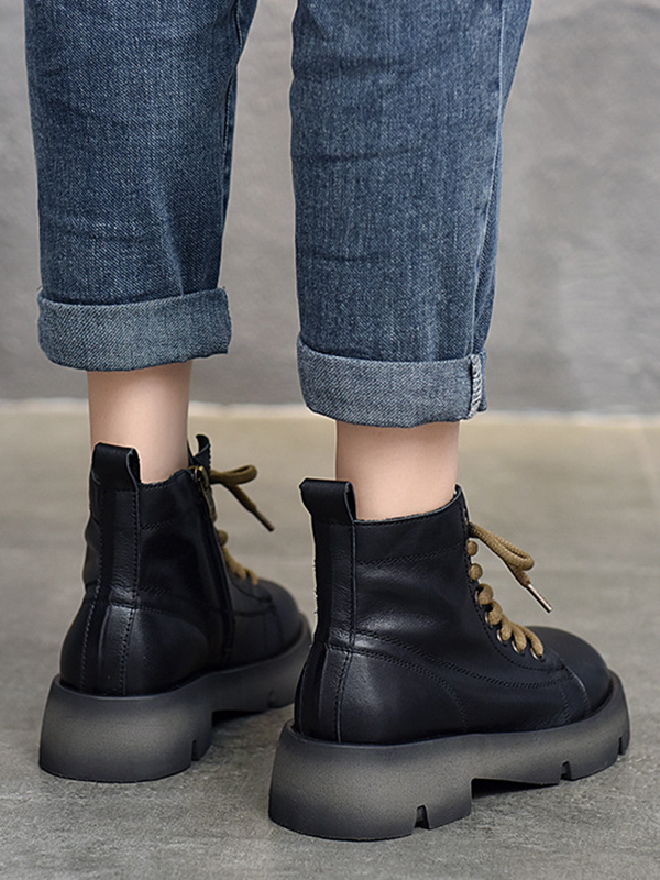 Cow Leather Lace-Up Zipper Martin Booties