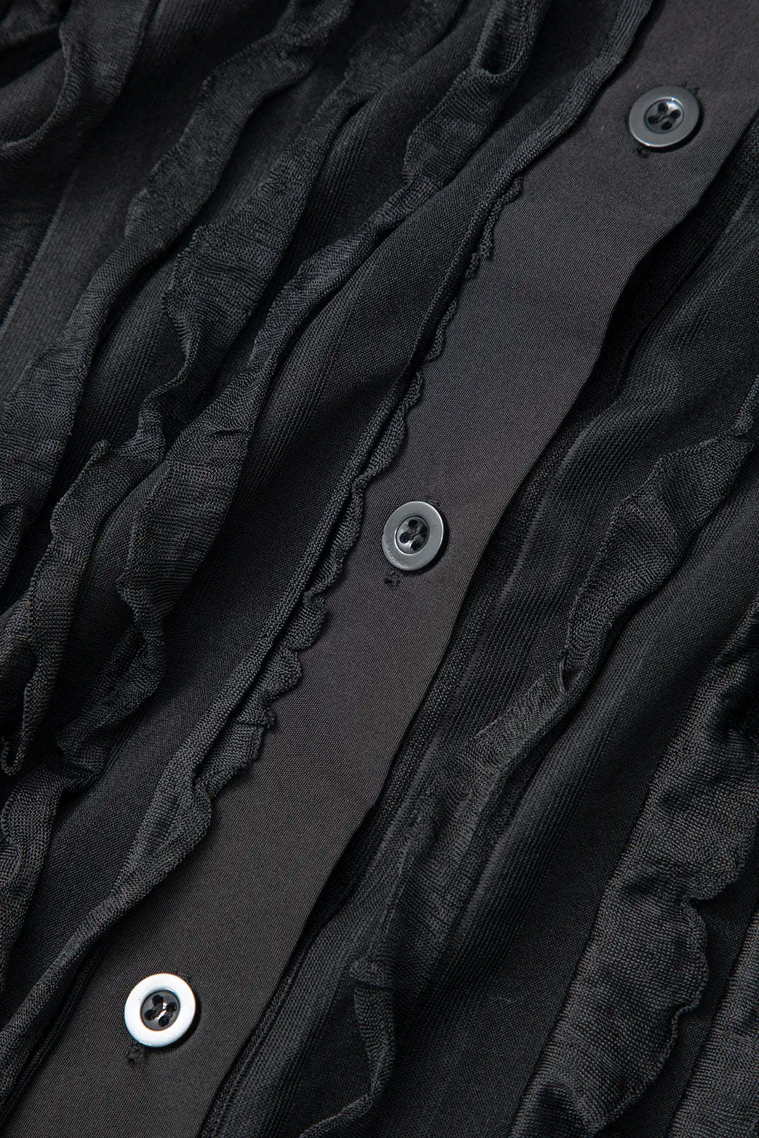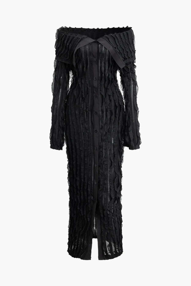 Pelze Black Button Slit Long Sleeve Maxi Dress