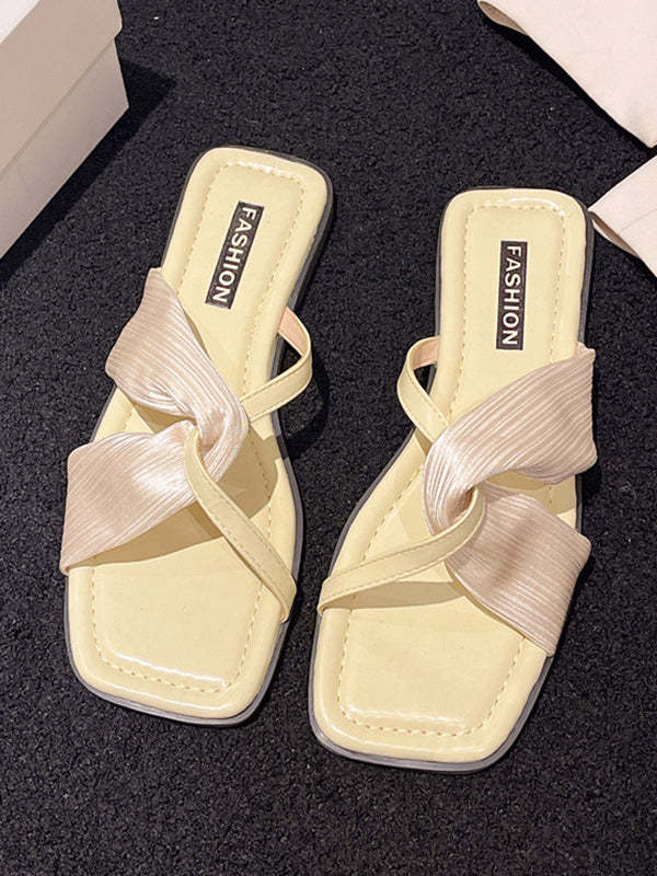 Pleated Split-Joint Square-Toe Sandals Slippers
