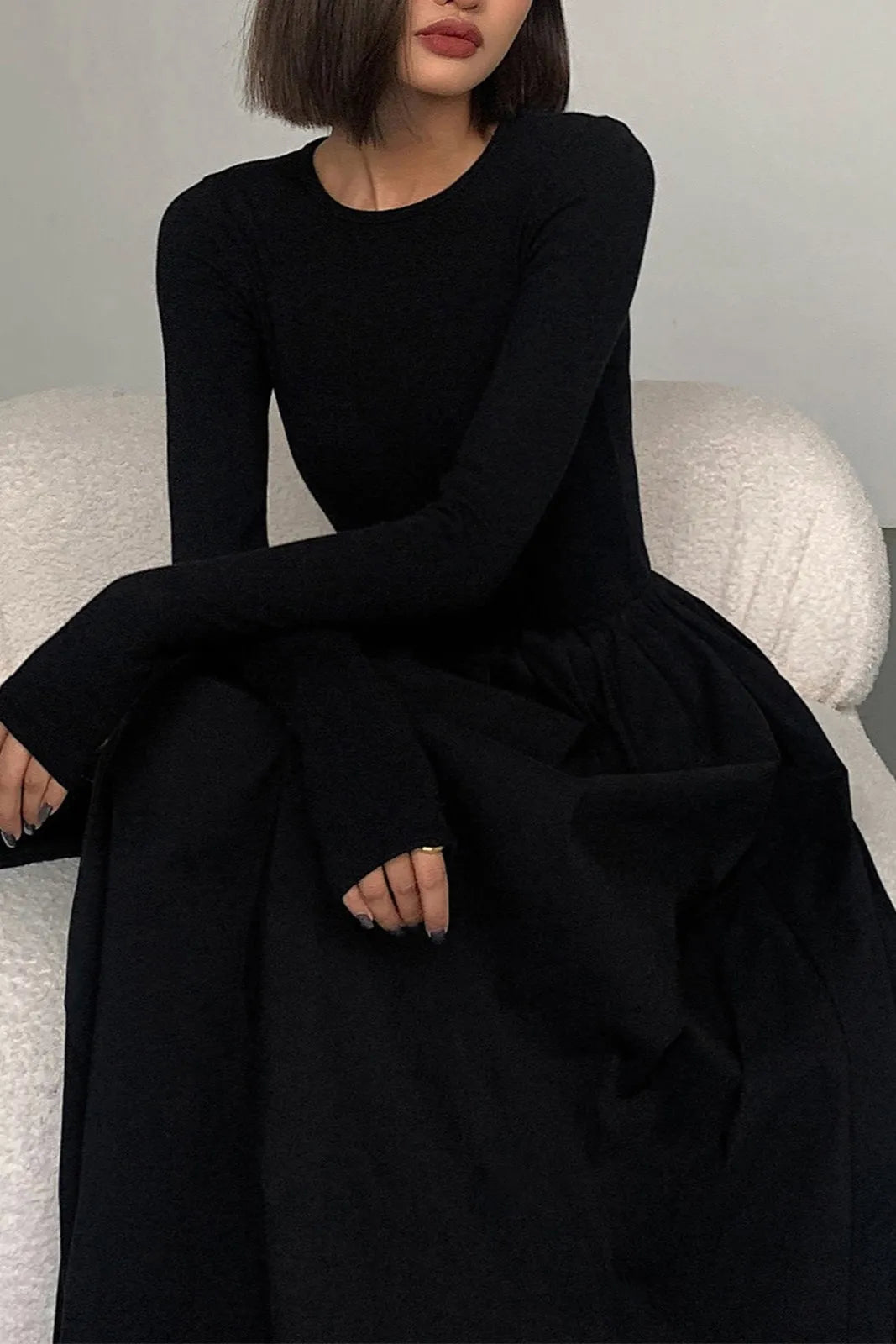 Pola Black Long Sleeve Maxi Dress