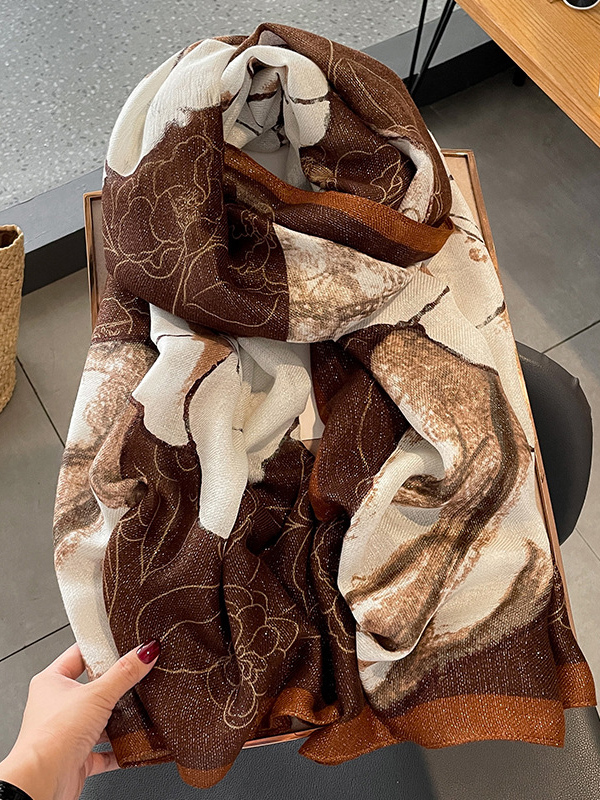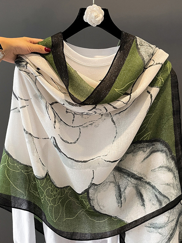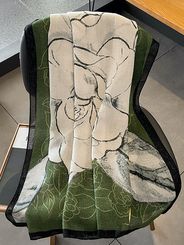 Ramie Cotton Lotus Print Warm Shawl Scarf