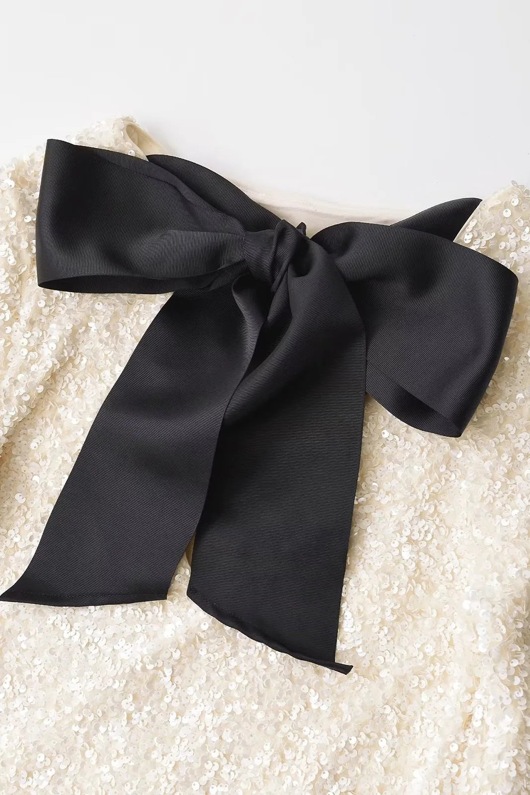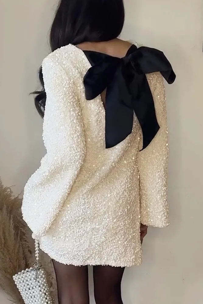 Rezi White Velvet Bowknot Sequin Mini Dress