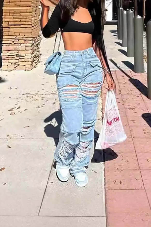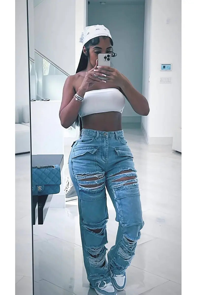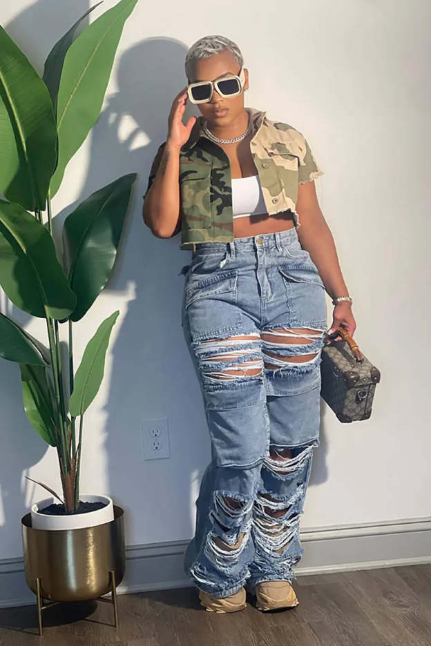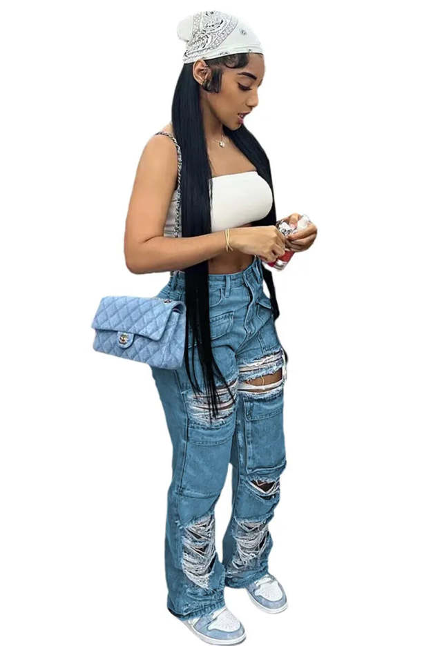 Trendy and versatile, these ripped jeans bring a laid-back vibe to your wardrobe. With a relaxed fit and distressed details, they are perfect for casual outings and everyday wear.
