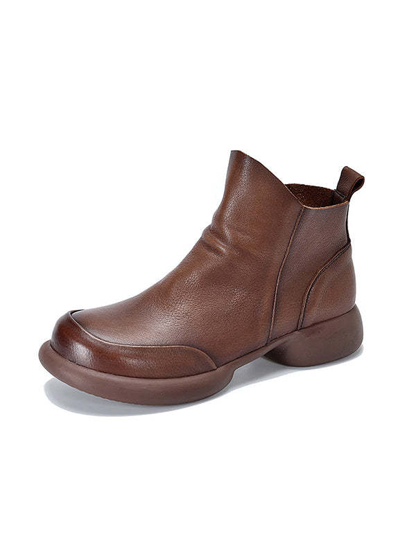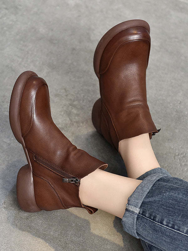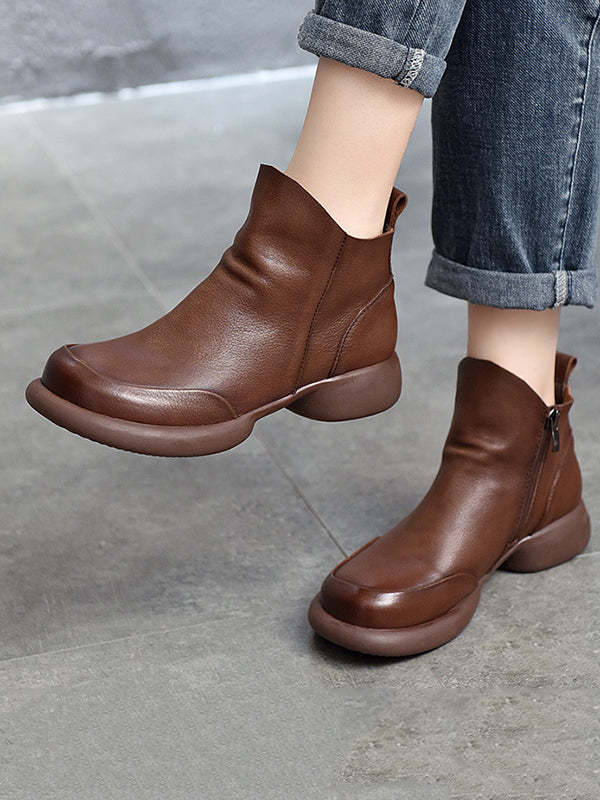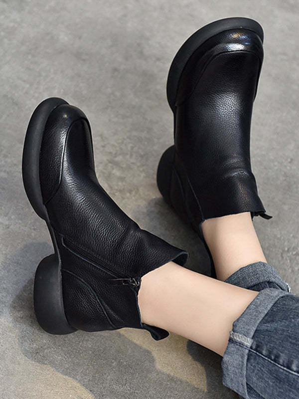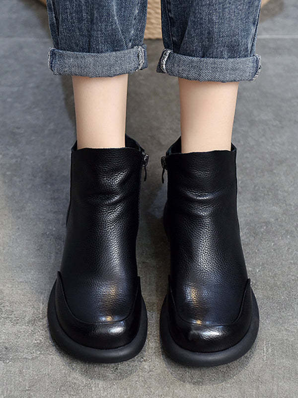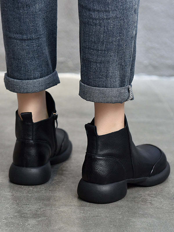 Round-Toe Solid Color Zipper Boots