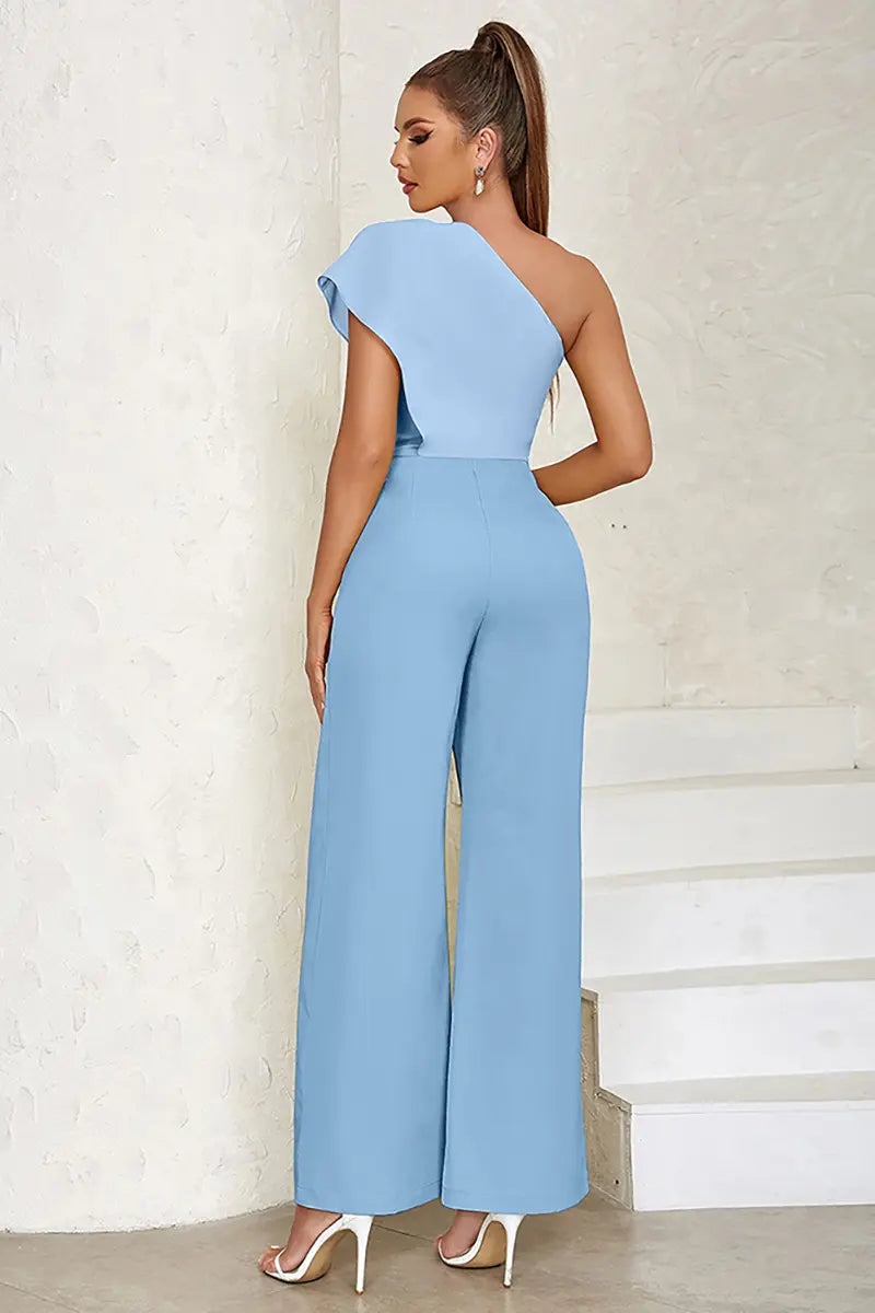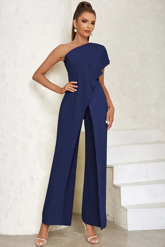 This seductive jumpsuit combines edgy sophistication with modern allure. Featuring a one-shoulder design and hollow back detail, it accentuates your curves and adds a bold statement to your outfit. The fitted bodice seamlessly transitions into flared pants, offering both elegance and freedom of movement. Crafted from high-quality fabric, this jumpsuit ensures comfort while keeping you stylish and confident at any event.