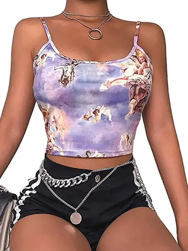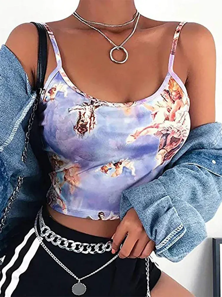Sexy Slim Sling Angel Print Summer Camisole Women’s Sexy Streetwear Short Cropped Navel Bra Top