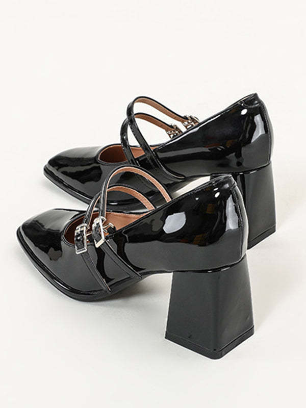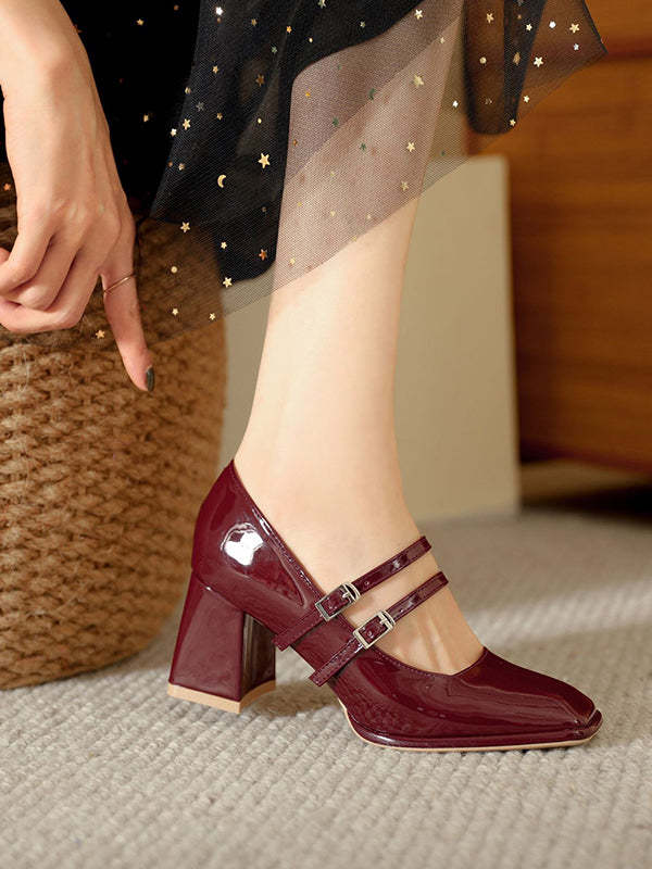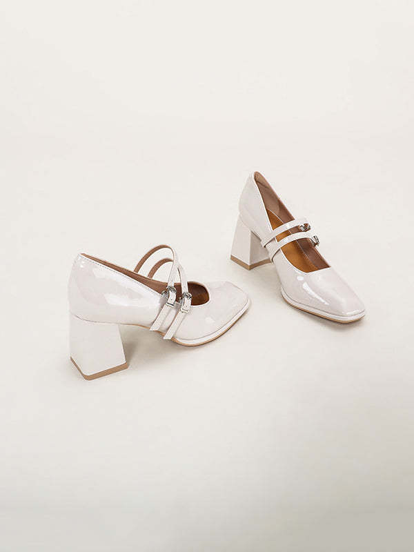Shallow Cut Square-Toe Mary Janes Pumps