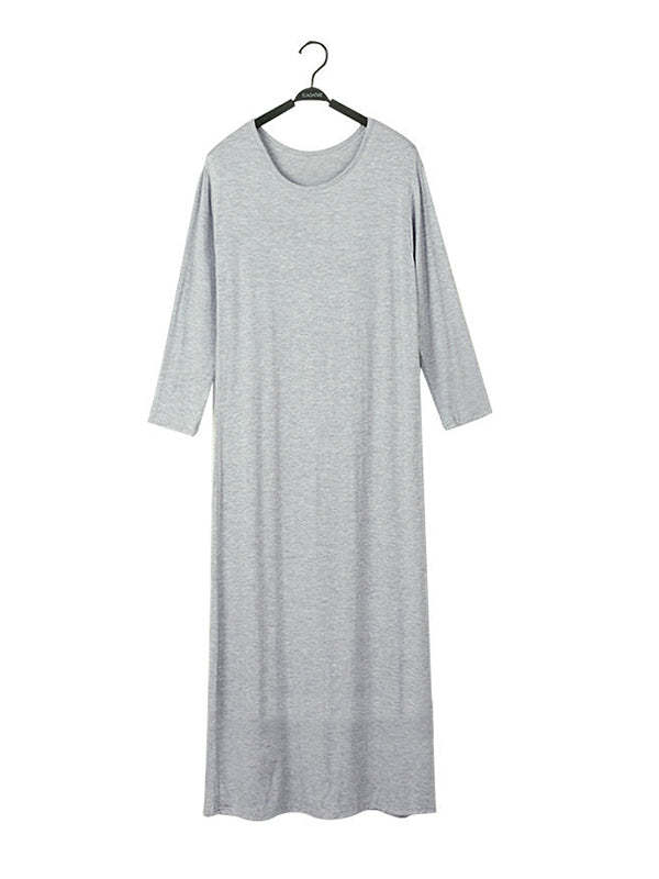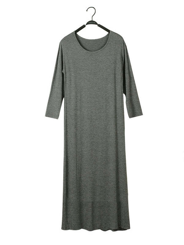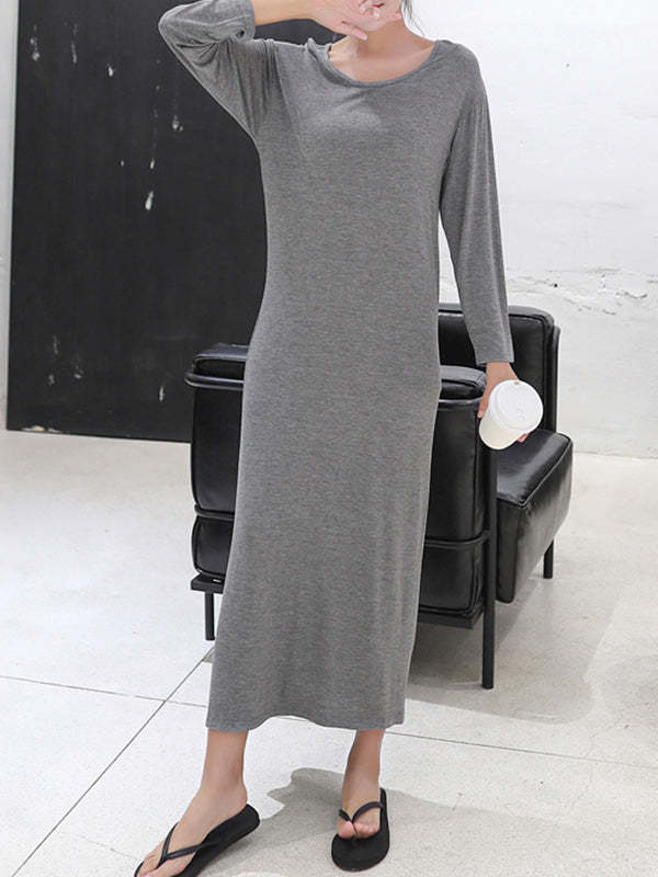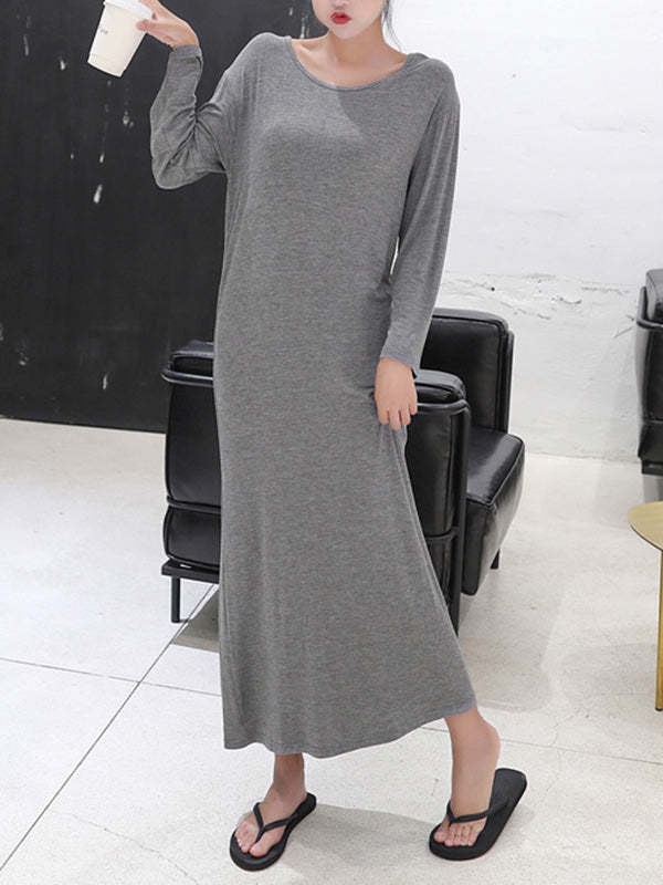 Simple Modal Solid Color Round-Neck Long Sleeves Midi Dress