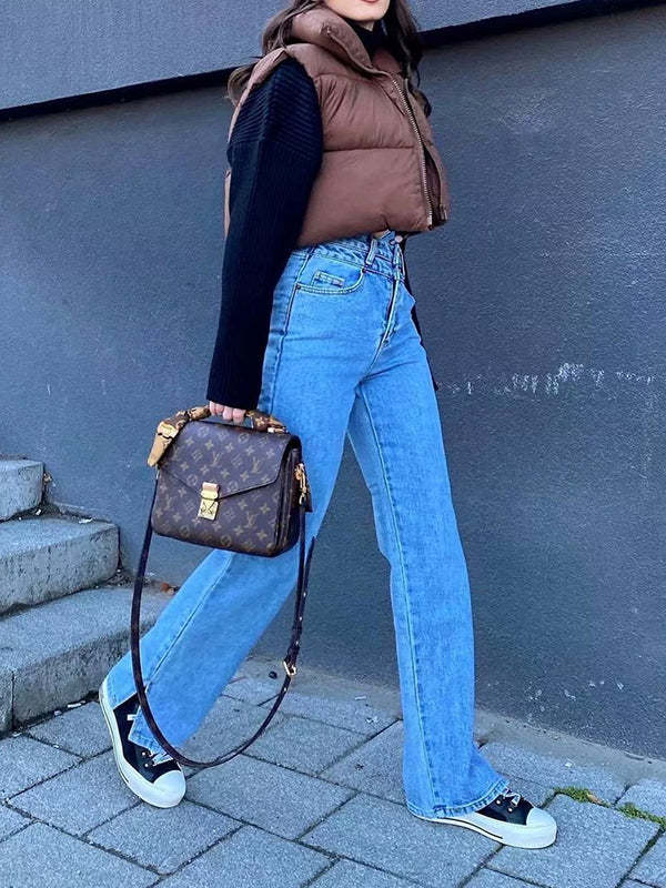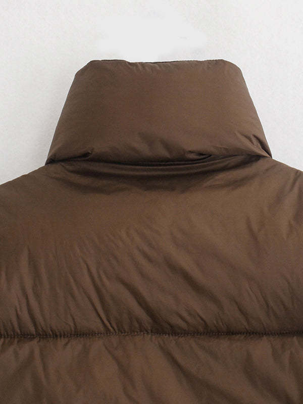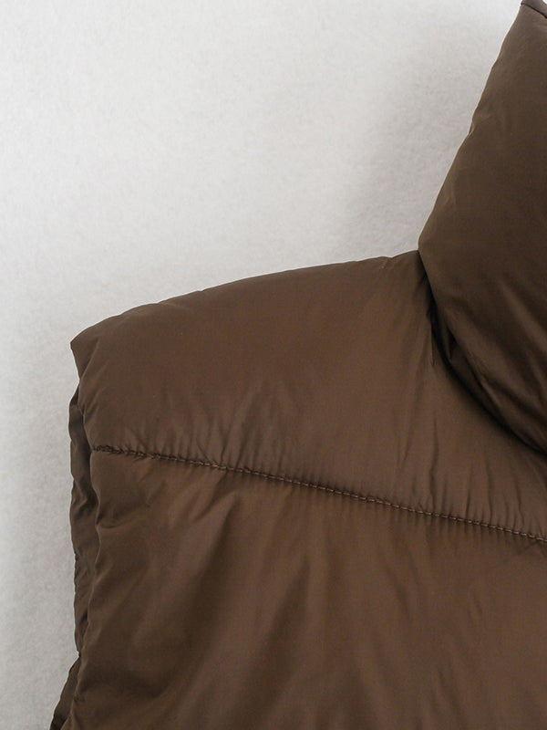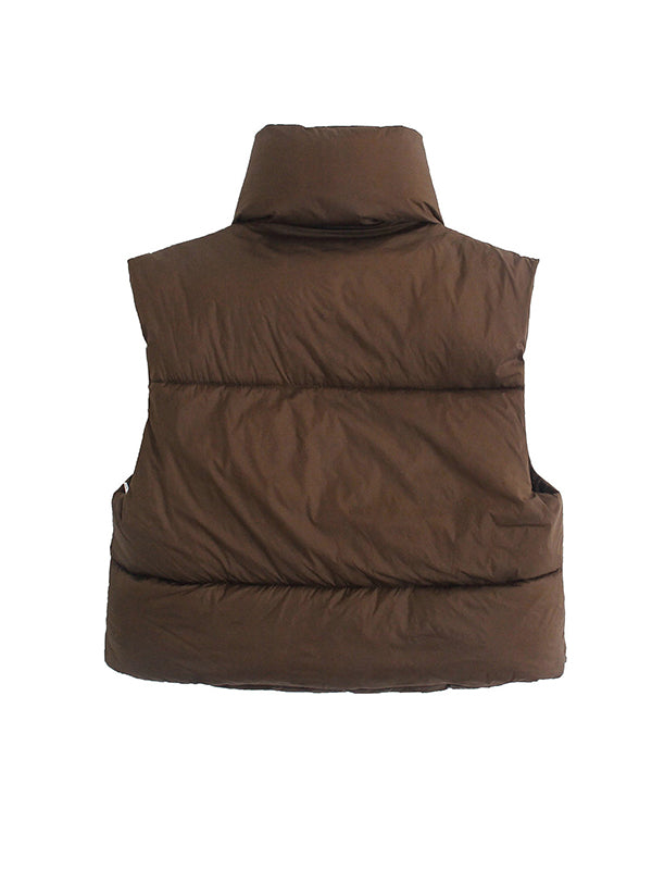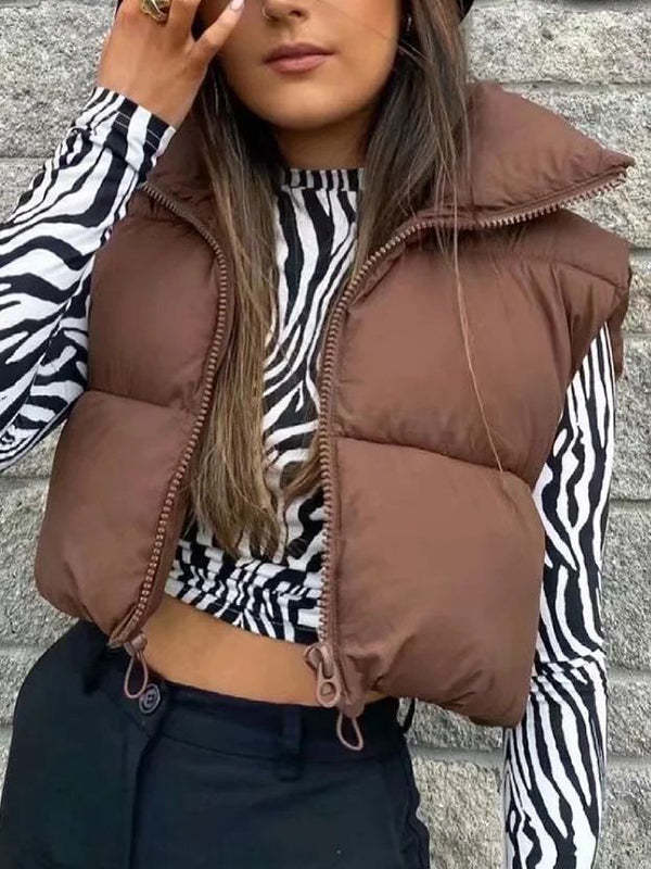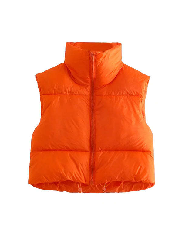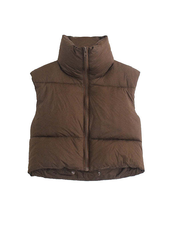 Skinny Sleeveless Solid Color Zipper Stand Collar Padded Vest Vest Top