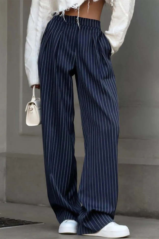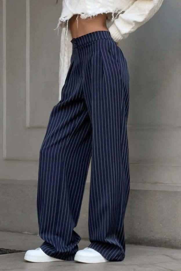 Slaia Navy Pinstripe Pleated Wide Leg Pants