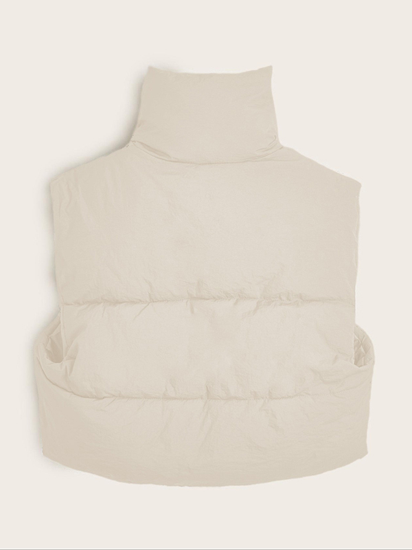 Sleeveless Drawstring Solid Color Split-Joint Zipper High Neck Padded Vest