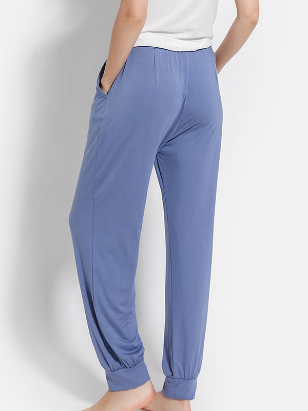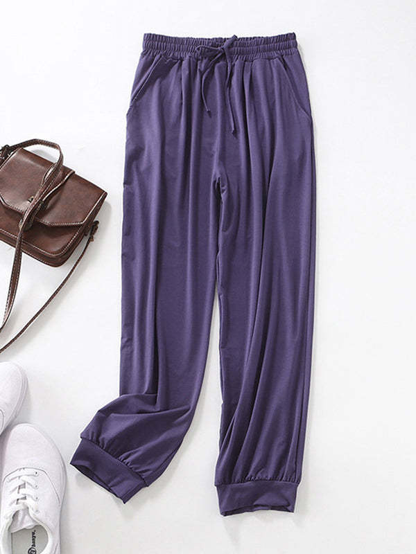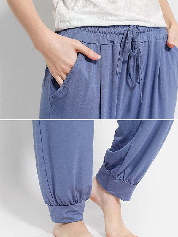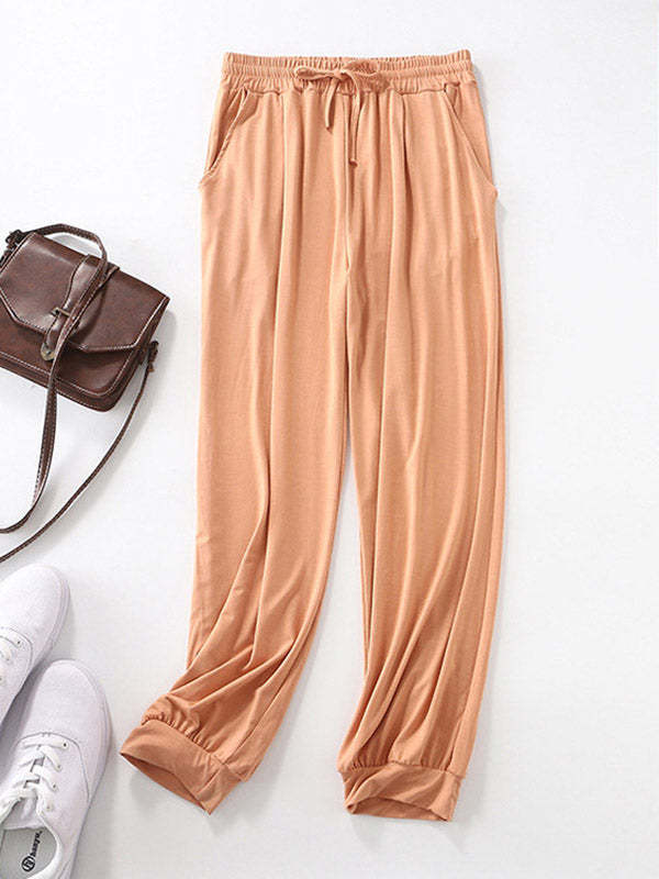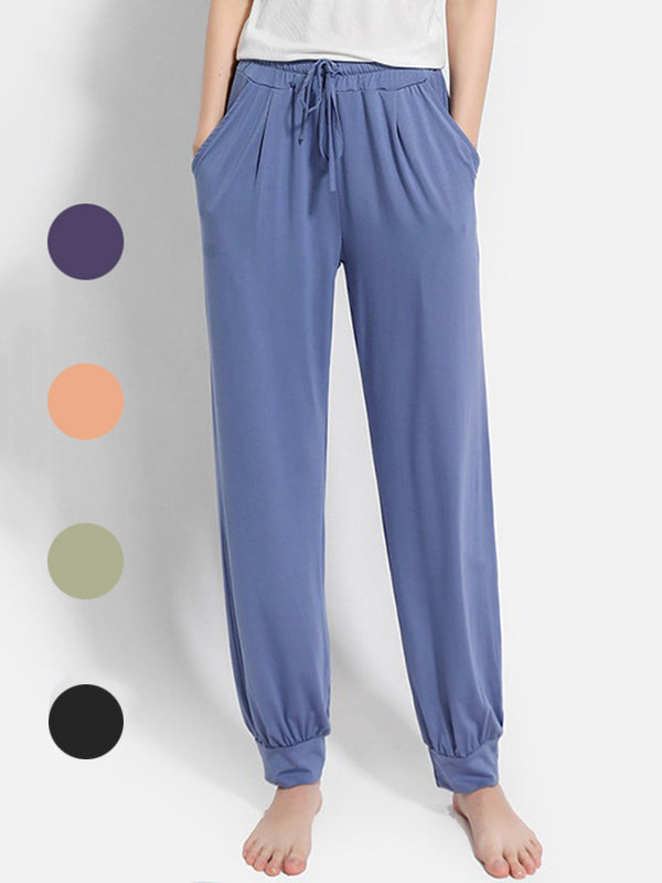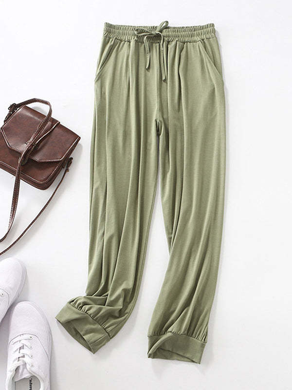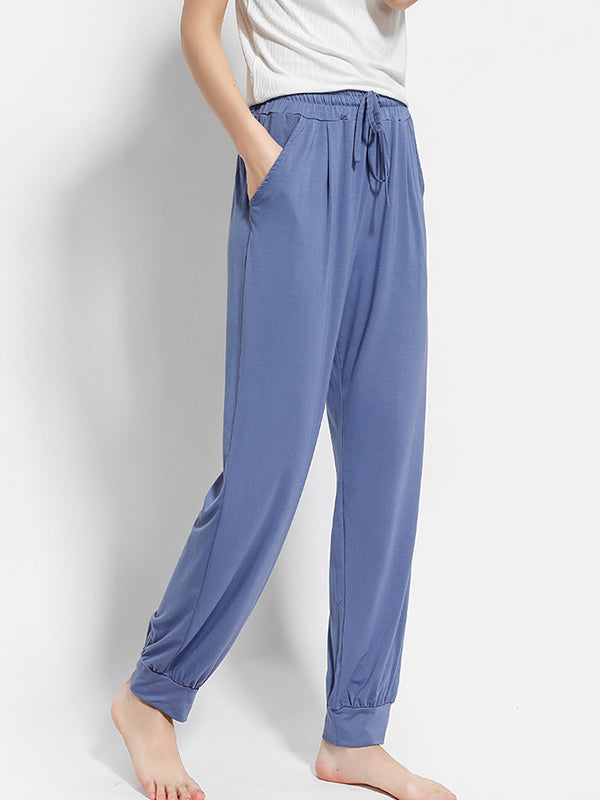 Solid Color Bandage Casual Loose Pajama Pants