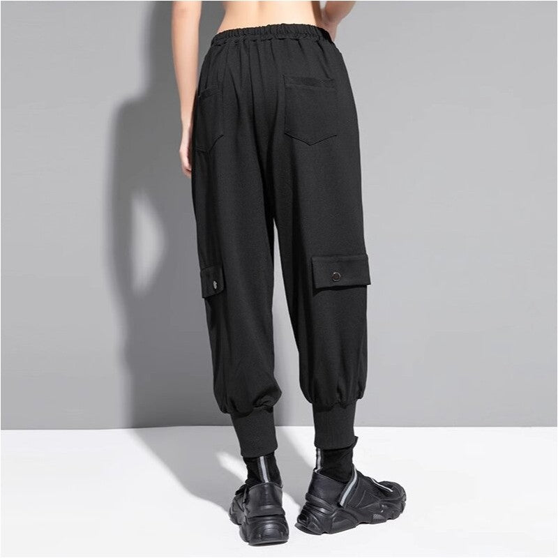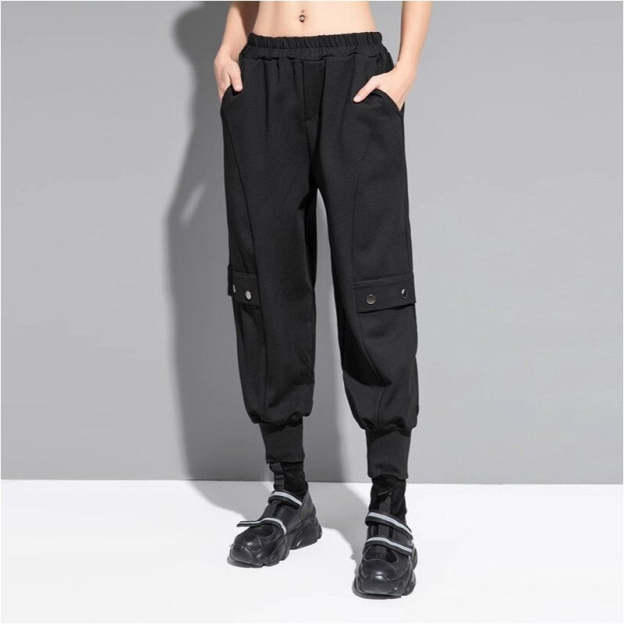 Stay stylish and comfortable in these solid color harem pants with elastic cuffs. Made from high-quality, thick fabric, these casual pants are perfect for everyday wear. Add a touch of chic to your wardrobe with these versatile and trendy bottoms.