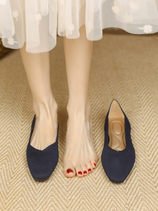 Solid Color Square-Toe Flats Shoes