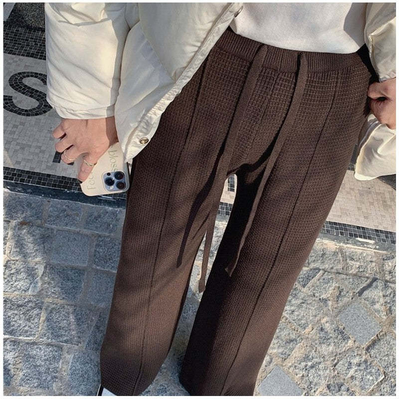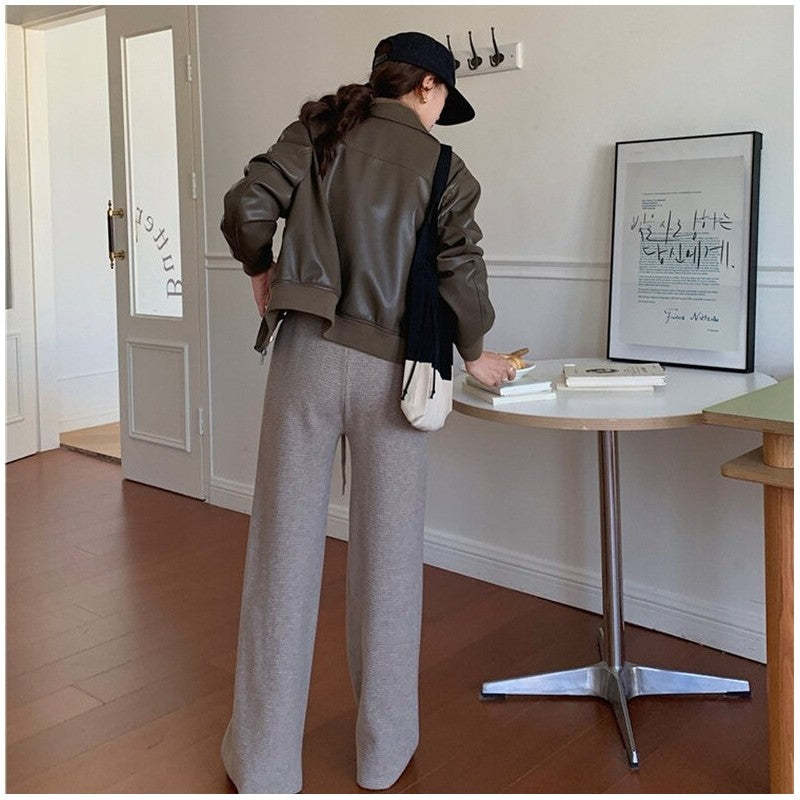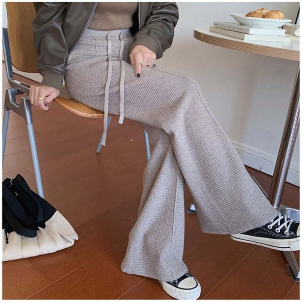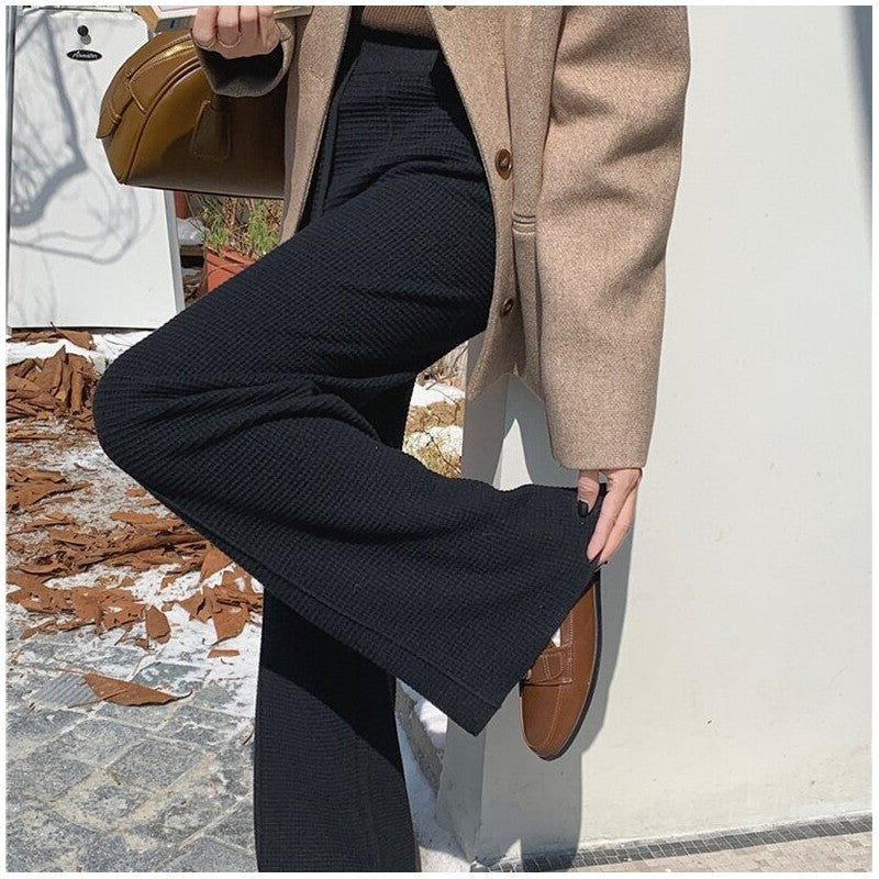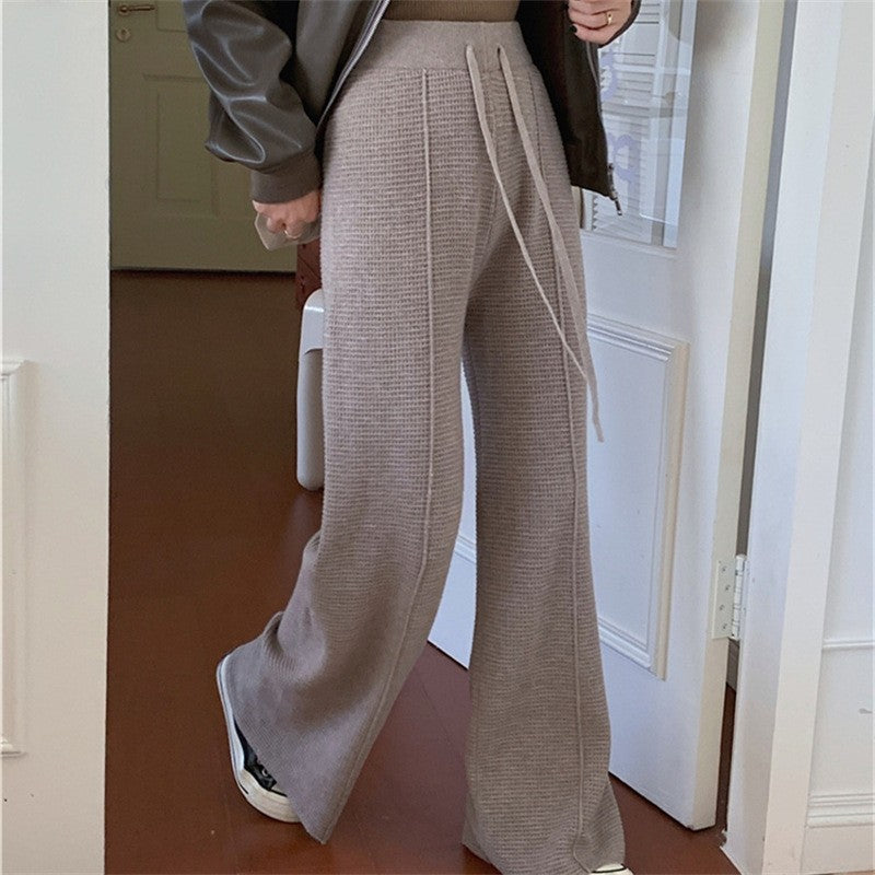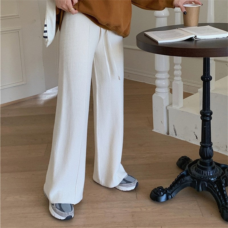 Solid Color Waffle Knit Retro Wide Leg Pants