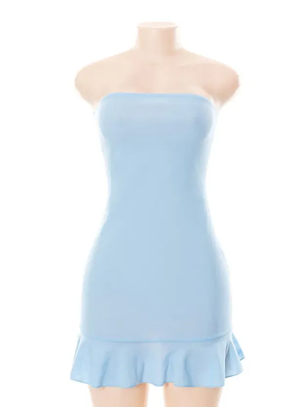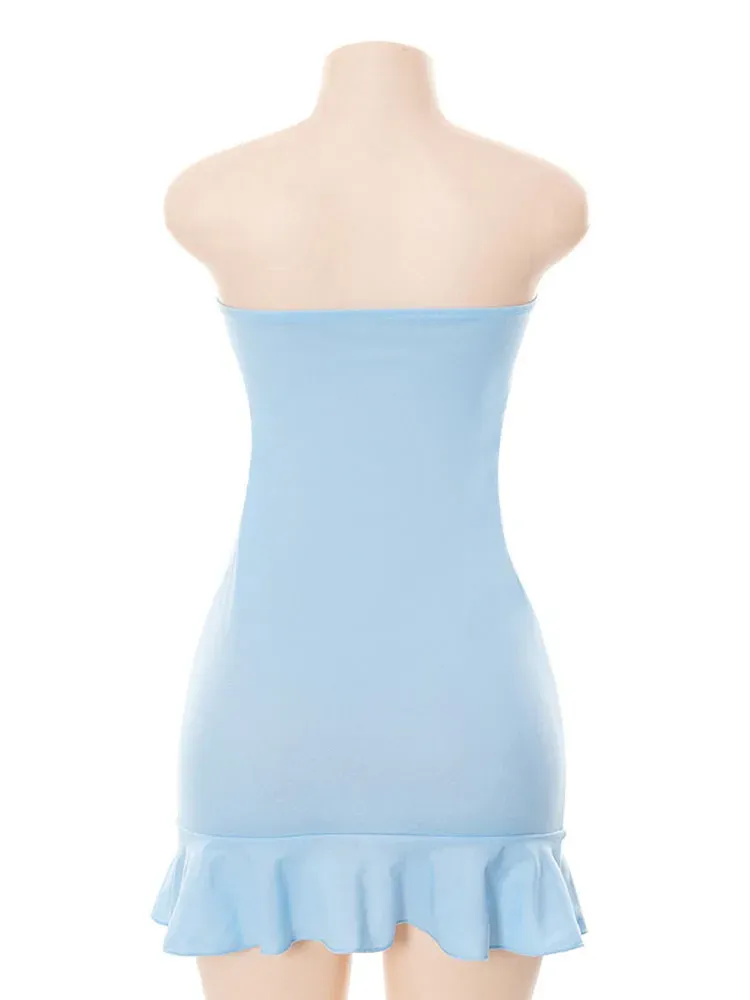 Strapless Mini Dress For Women Summer Clothing Solid Blue High Waist Bodycon Sexi Night Dress Hot Vestidos De Mujer Backless