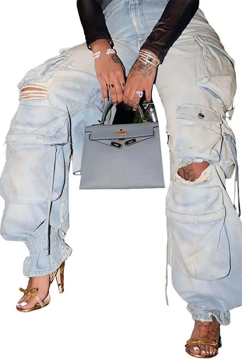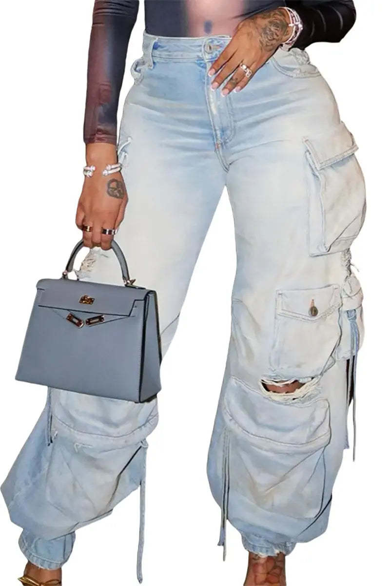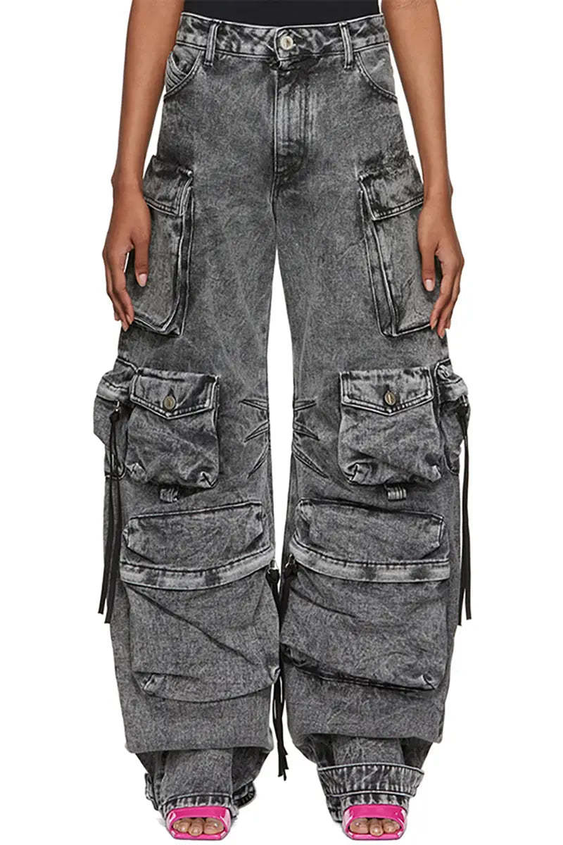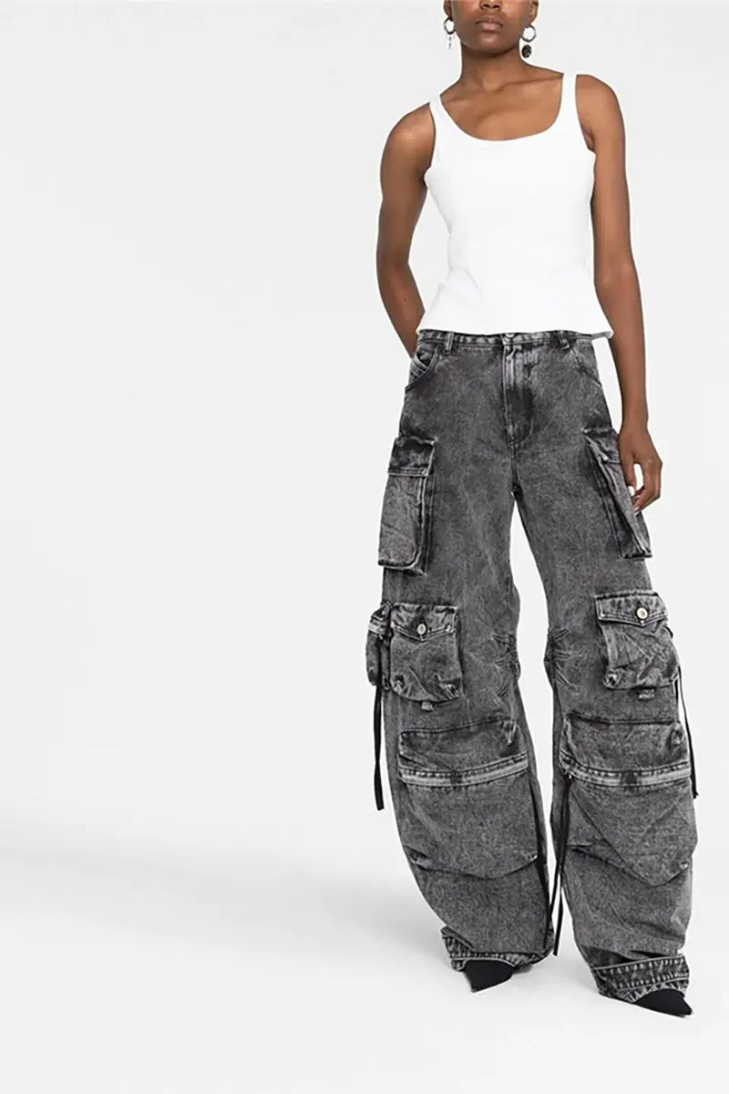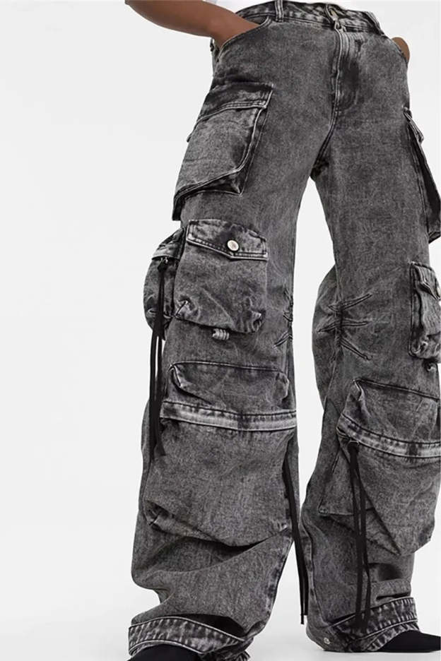 These 2023 modern street-style cargo jeans redefine versatility and comfort. Designed with a wide-leg fit, multiple utility pockets, and a washed-out finish, they blend contemporary aesthetics with practical functionality. Perfect for everyday wear, these jeans are a wardrobe staple for creating effortlessly stylish outfits.