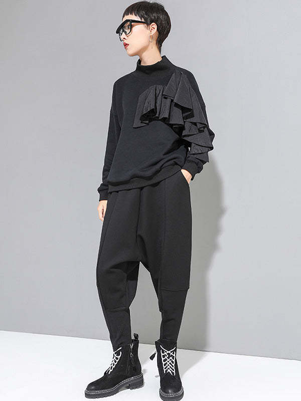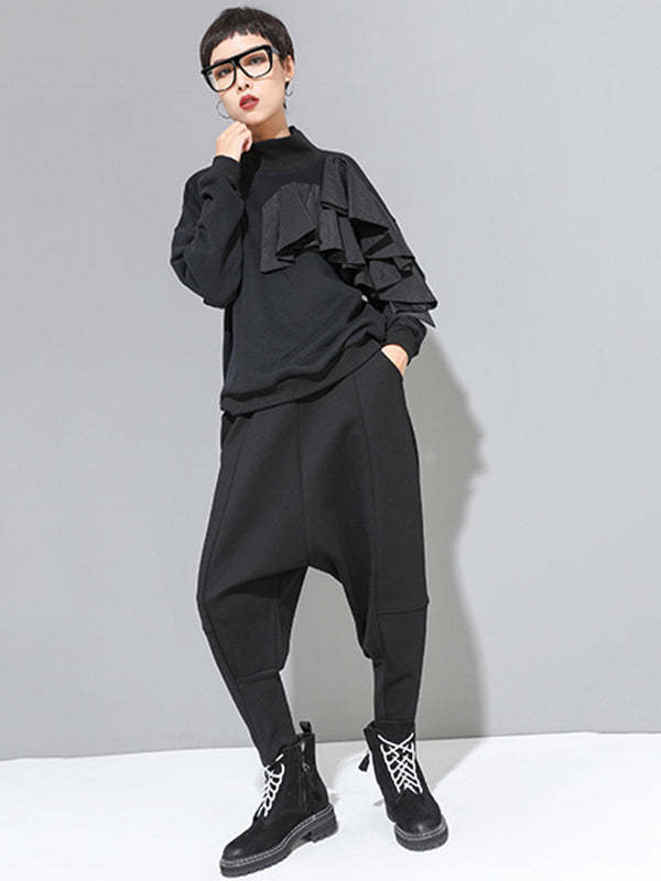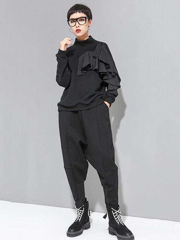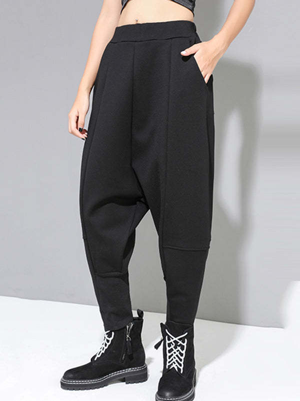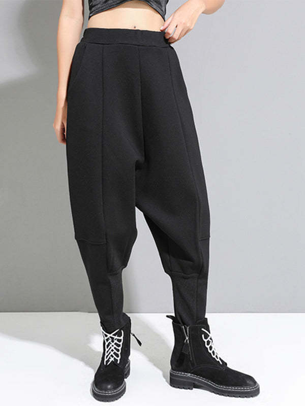 Stylish Black Velvet Split-Joint Harem Pants
