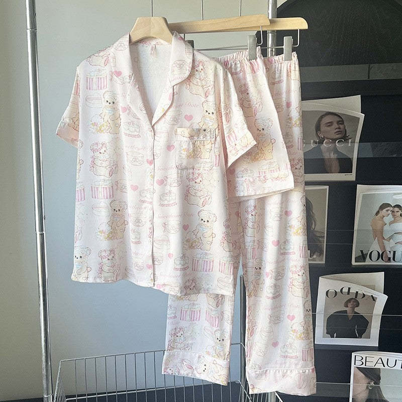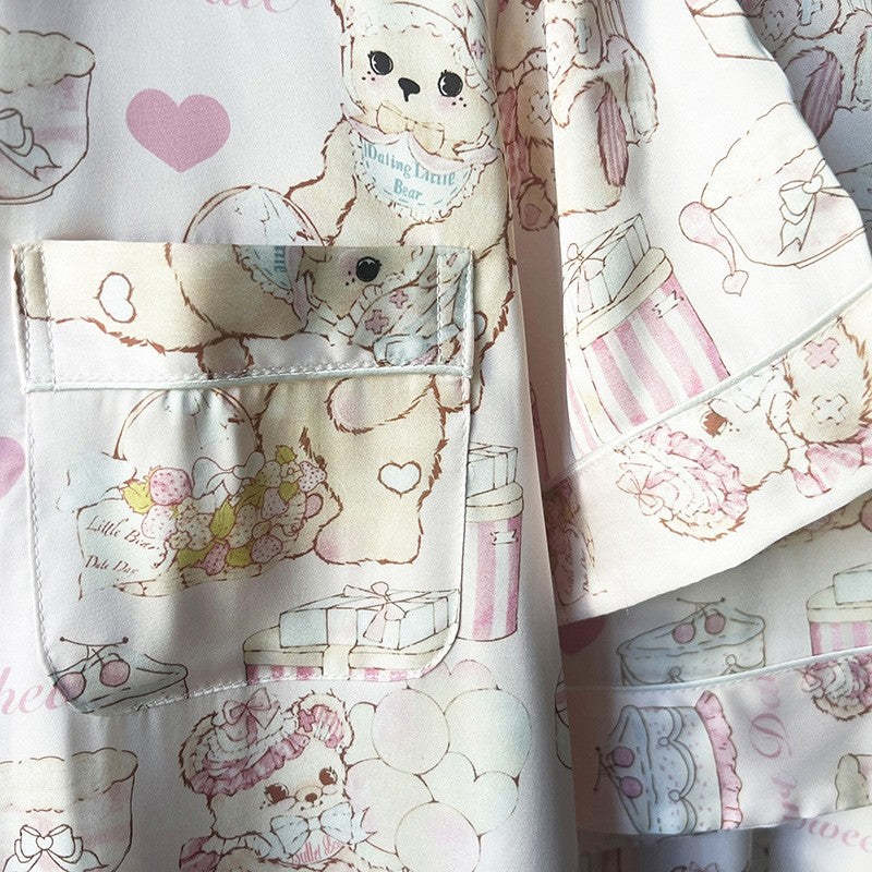 Three-Piece Cartoon Bear Short-Sleeve Pajama Set