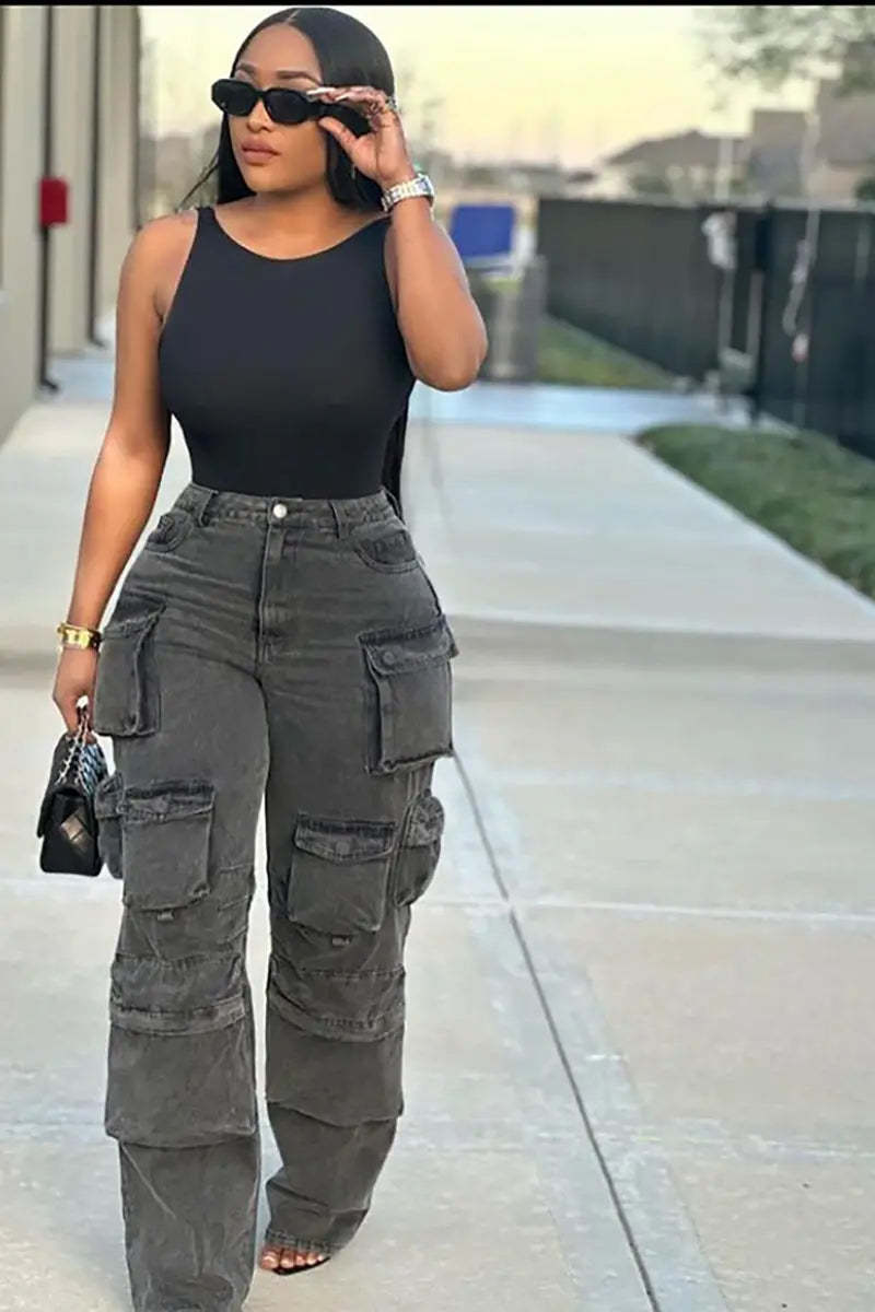Elevate your streetwear game with these trendy multi-pocket denim cargo pants. Designed with a washed finish and ample storage, these pants combine functionality with a fashion-forward edge.