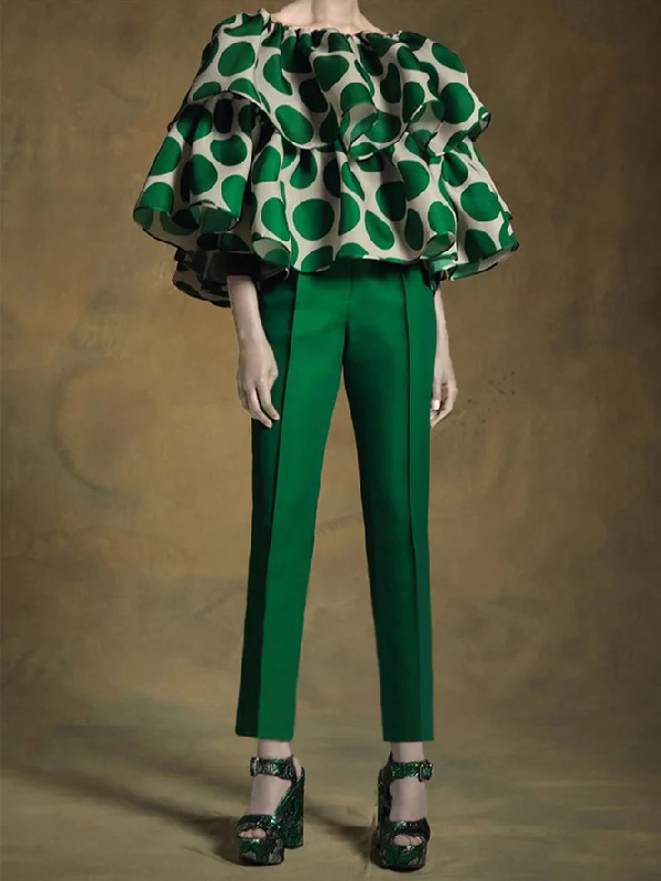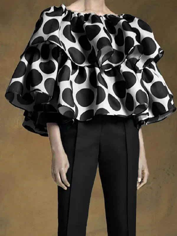 Trendy Tops Loose Tiered Falbala Polka Dot Blouses&Shirts Tops