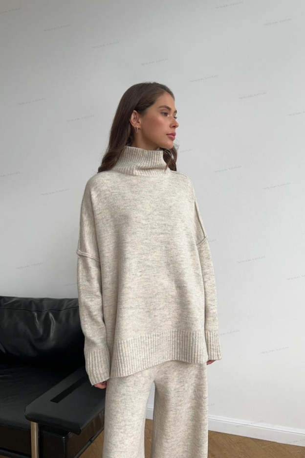 The turtleneck sweater features a cozy, high neckline that keeps you warm while adding a sophisticated touch. The side splits create a relaxed and modern vibe, allowing for ease of movement. The slightly oversized fit ensures comfort without sacrificing style, making it perfect for both casual and elevated looks.