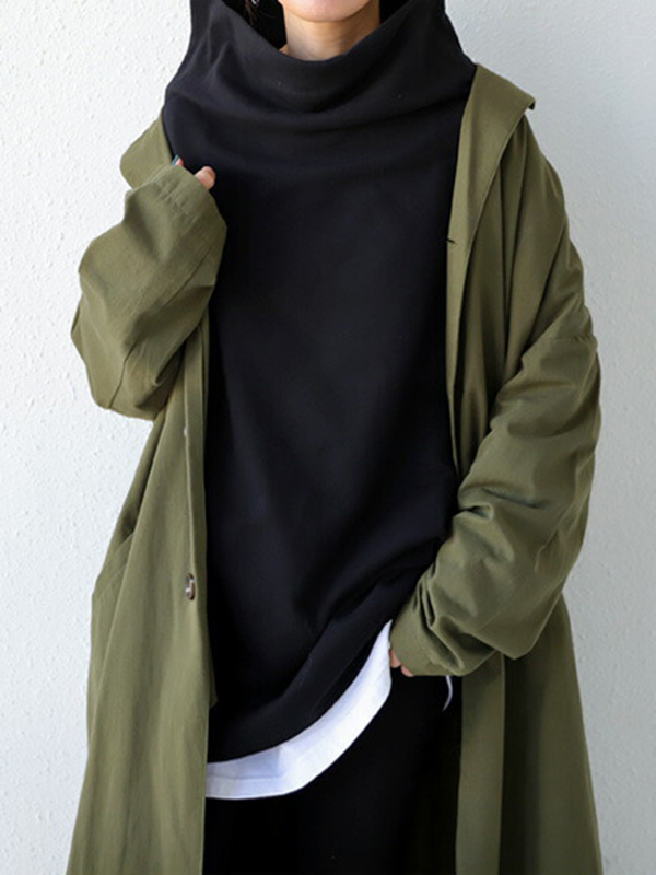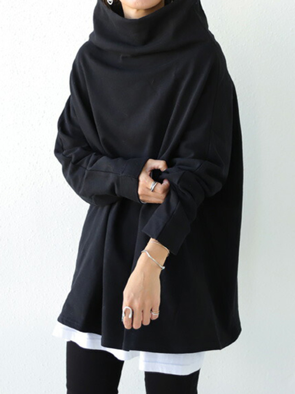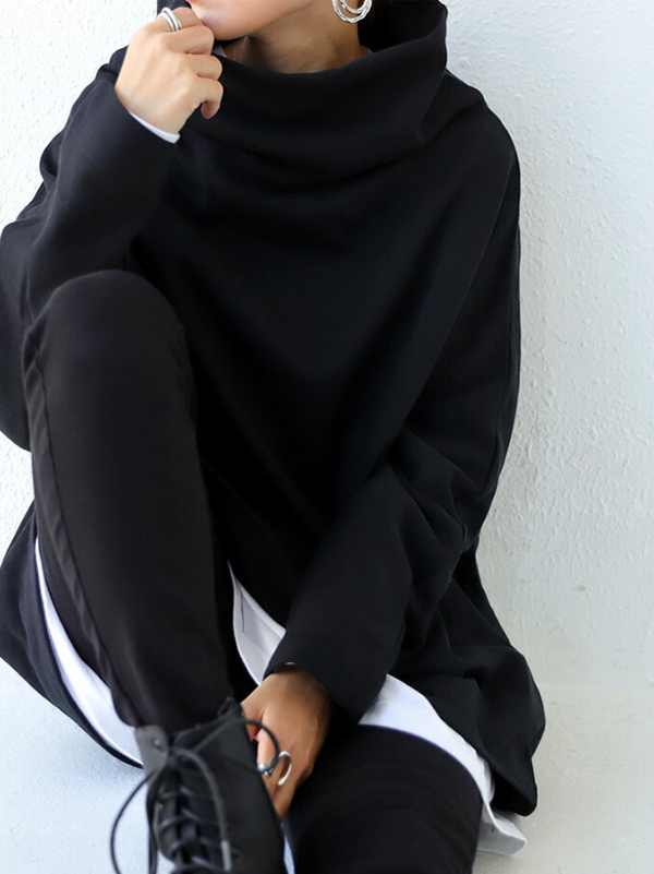 Urban Black&Gray High-Neck Long Sleeve Oversize T-Shirt