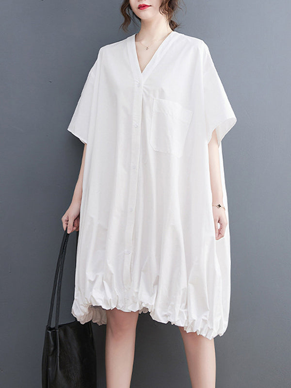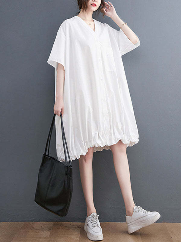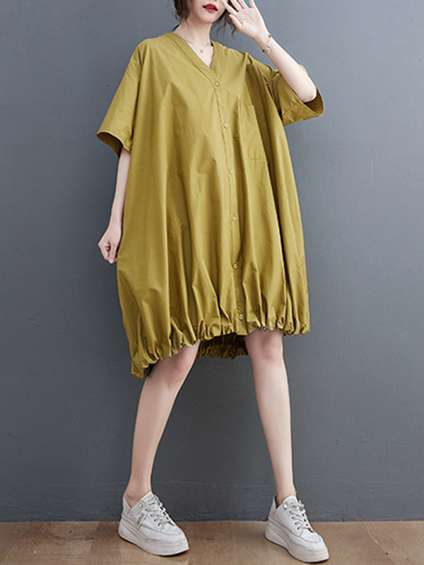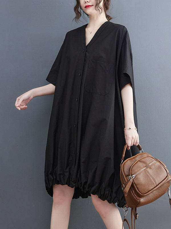 Urban Loose Solid Color Elasticity Hemline Midi Dress