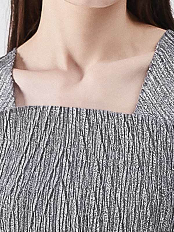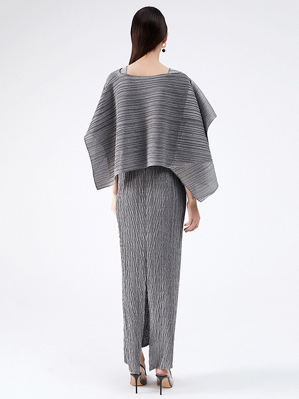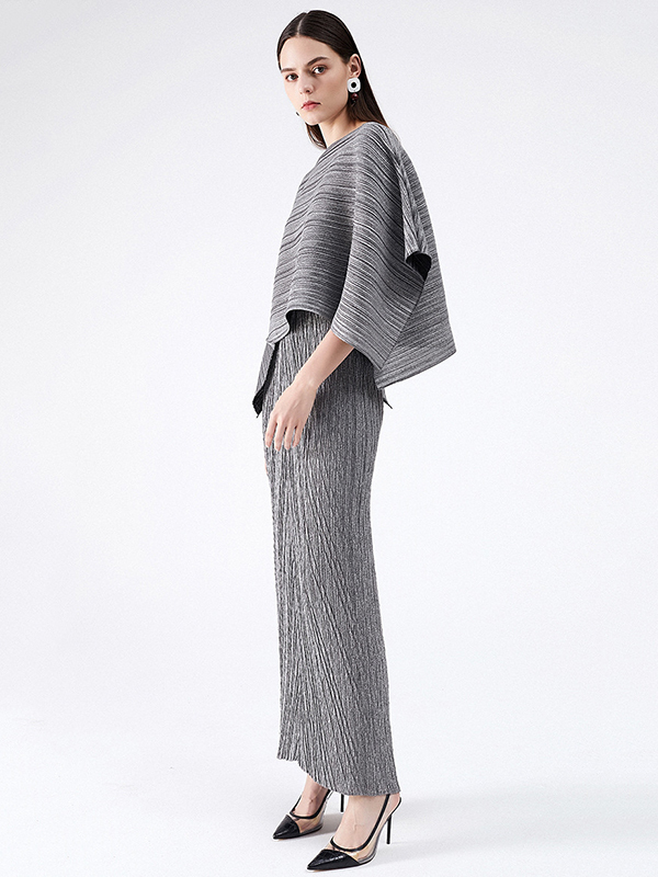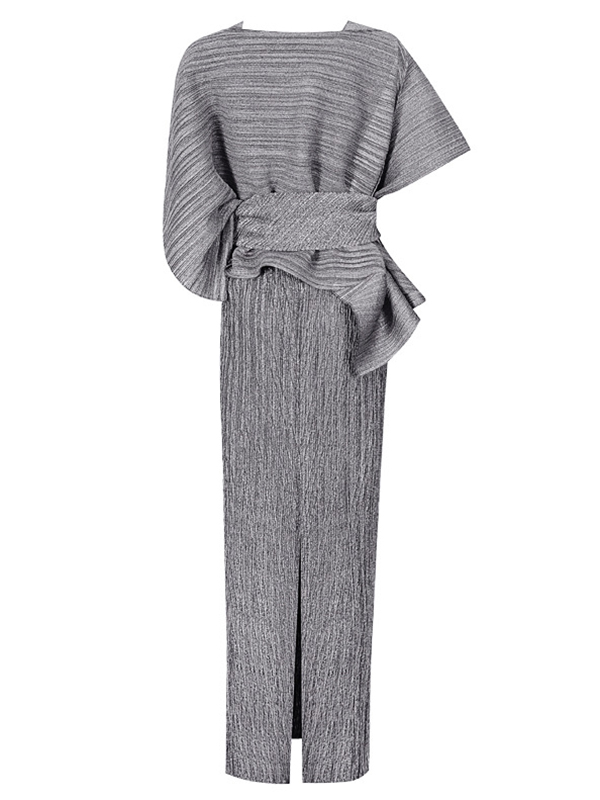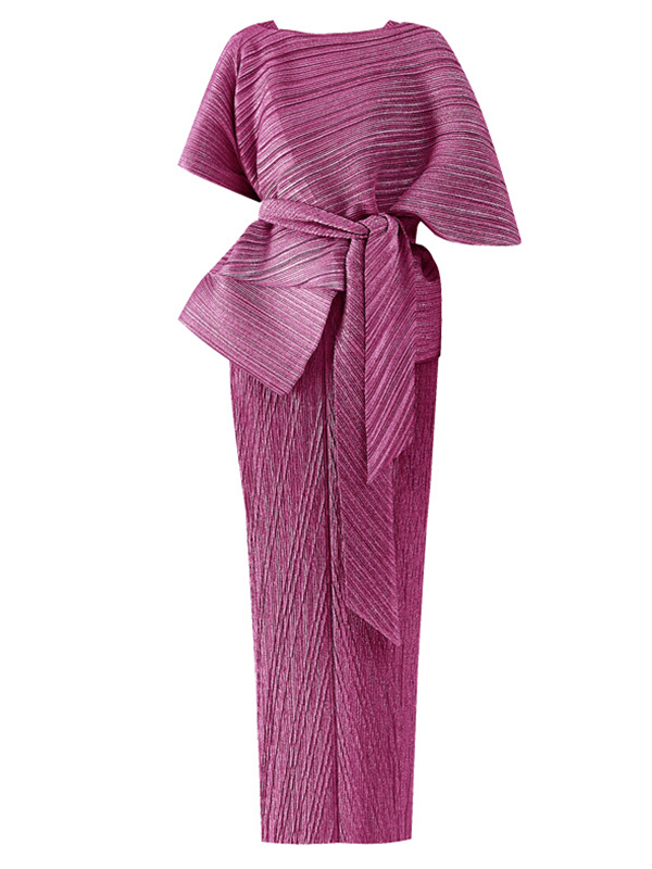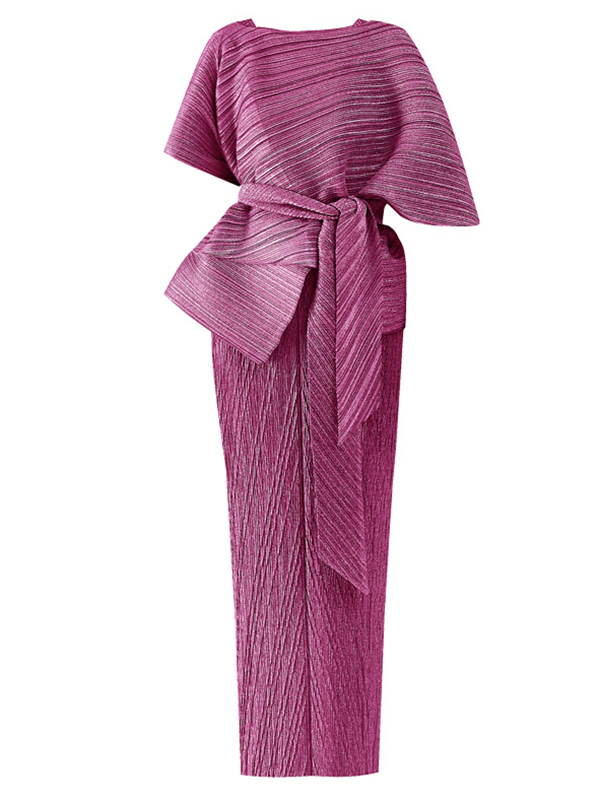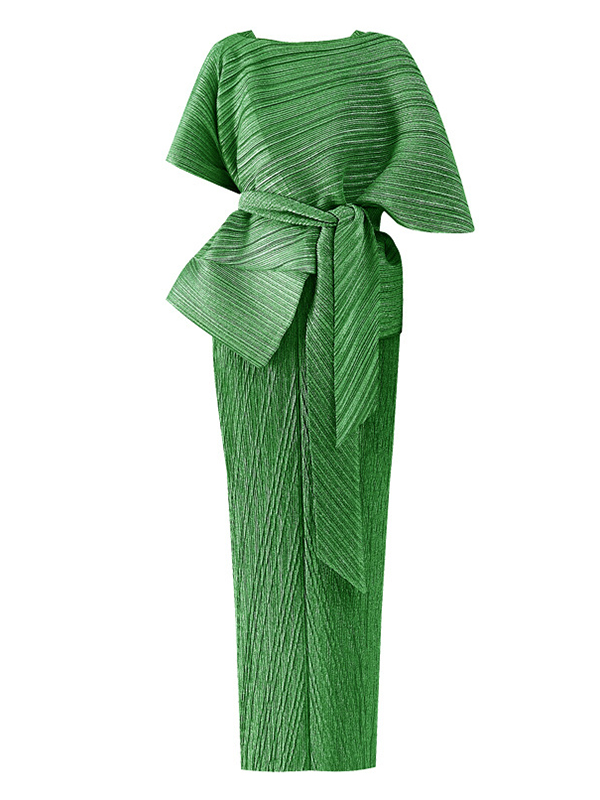 Urban Loose Solid Color Tied Pleated Top&V-Back Vest Dress Two Pieces Set