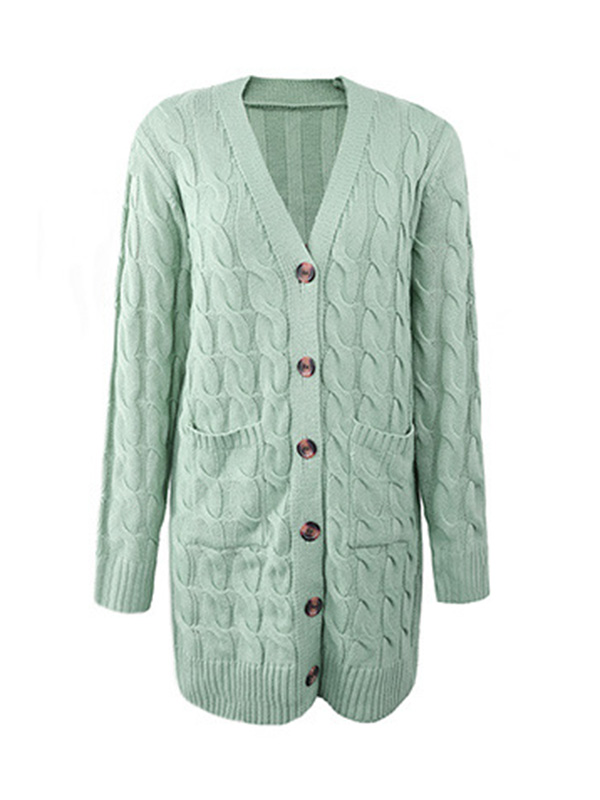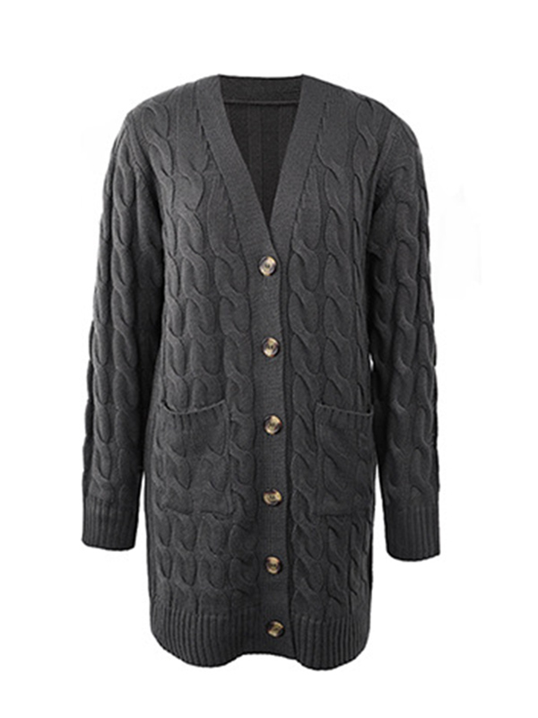 Urban Simple Loose Buttoned Solid Color Jacquard Cardigan Coat