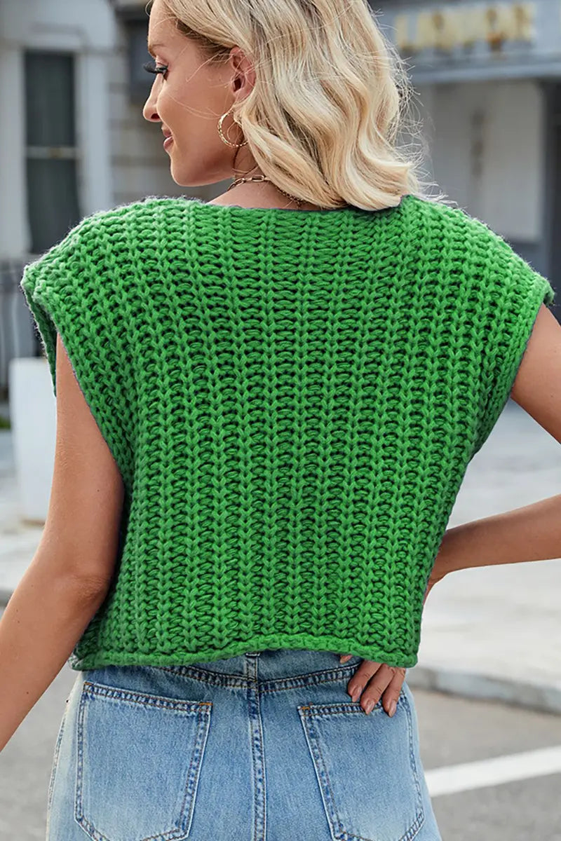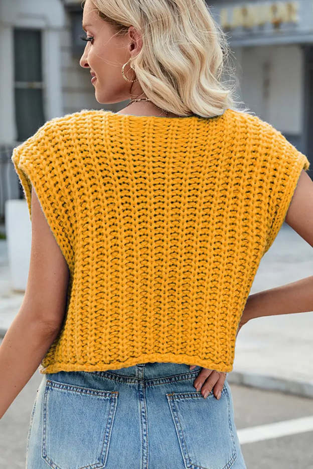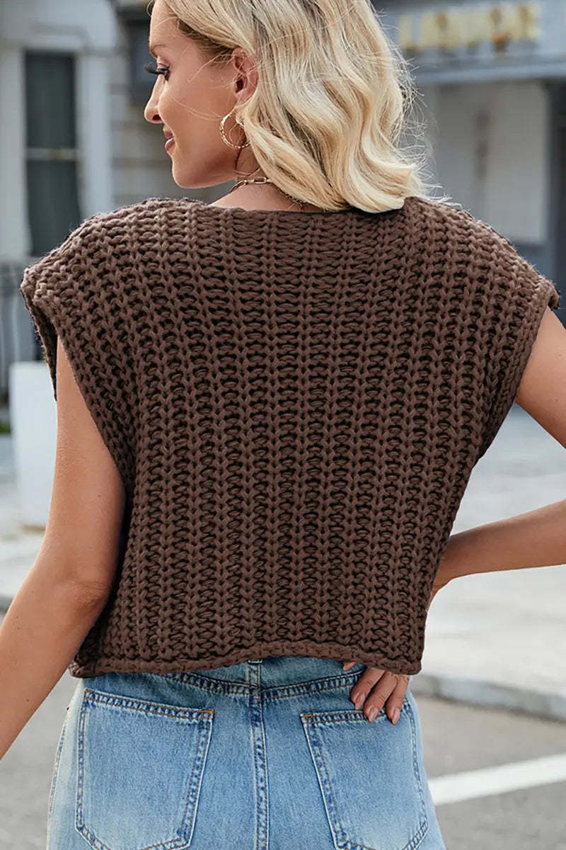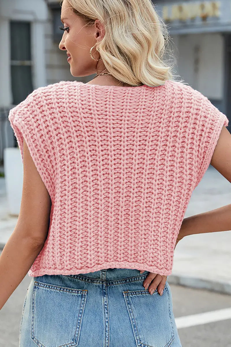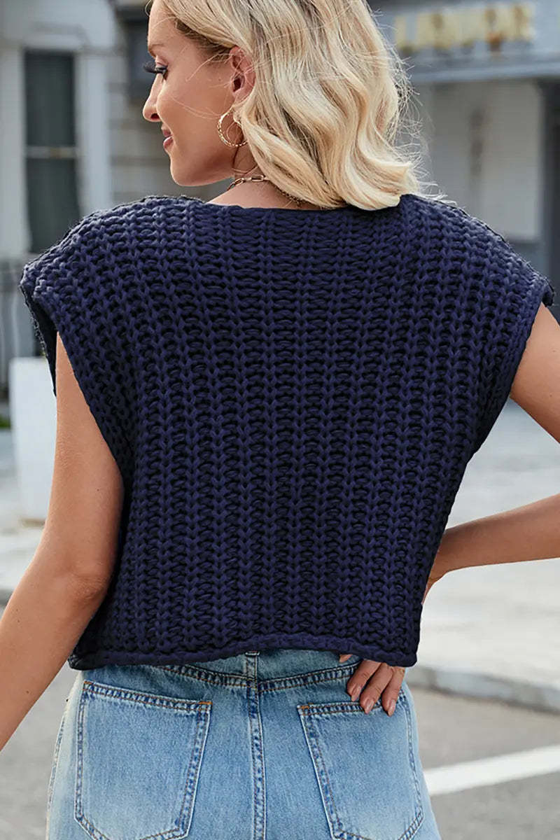 This V-neck sleeveless knit vest features a classic three-button design, making it a versatile and stylish layering piece. Its soft texture and timeless look add elegance and comfort to your wardrobe.