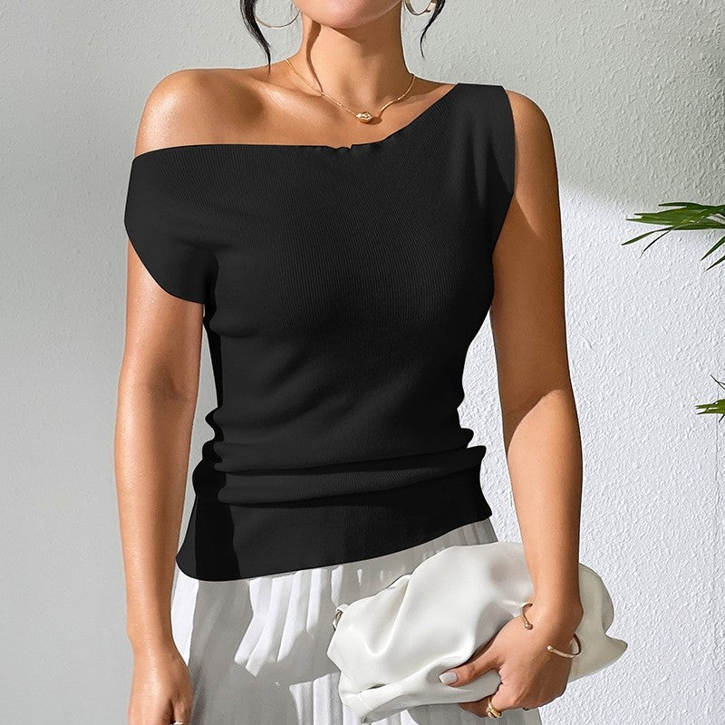 Versatile Solid Color Sleeveless Off Shoulder Knitted Vest