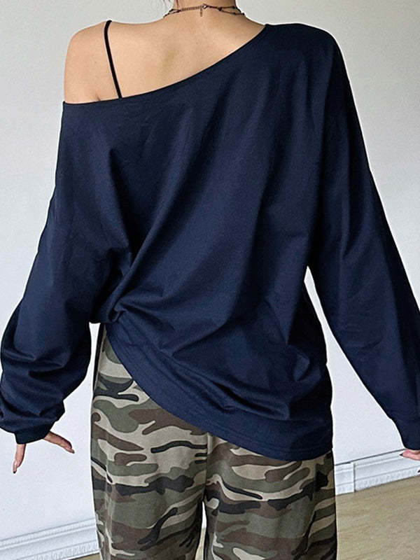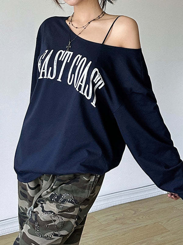 Style: Casual/Street/Vintage/Sweet/Y2K/Preppy Fabric Content: Cotton/Polyester Fit Type: Loose fit Neckline: One Shoulder Neck Sleeve Length: Long Sleeve