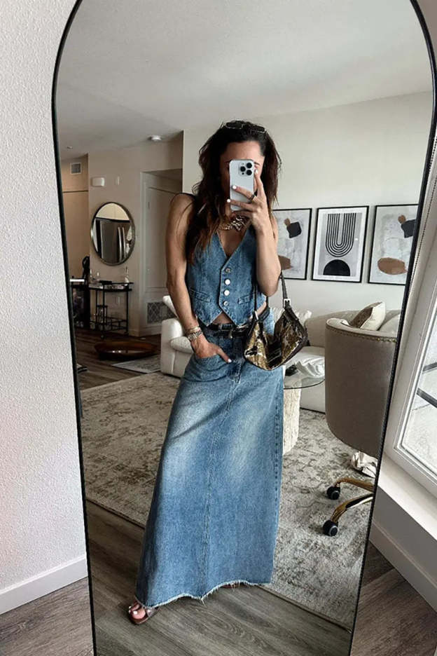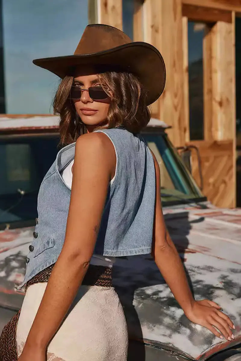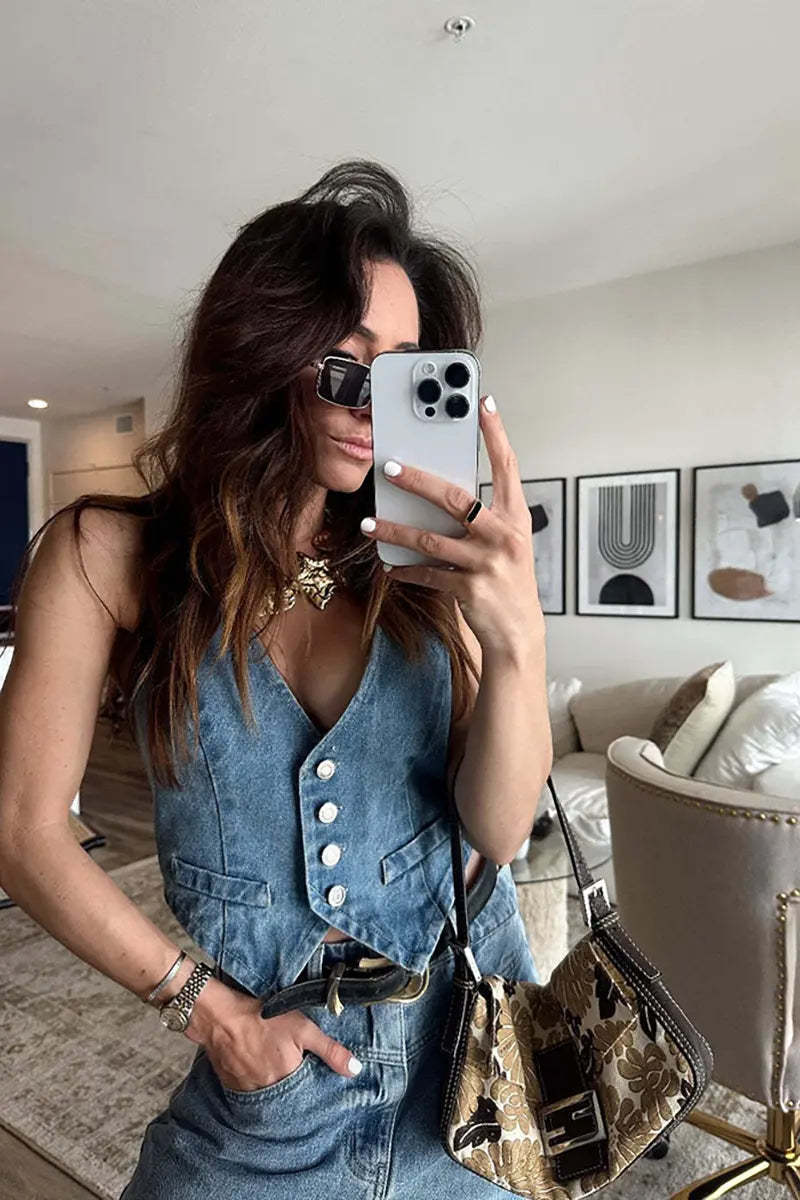 This vintage-inspired denim vest offers a timeless casual look with a modern twist. Designed for effortless layering, it’s crafted from high-quality denim, giving it a structured yet comfortable feel. Featuring classic button-down details, raw edges, and a relaxed fit, this vest is perfect for completing any casual outfit, adding a touch of cool, relaxed style. Whether paired with a dress, t-shirt, or even over a hoodie, this denim vest is a versatile wardrobe essential.
