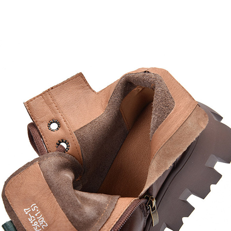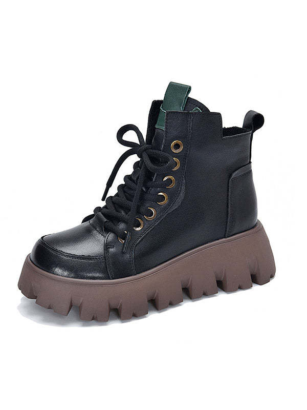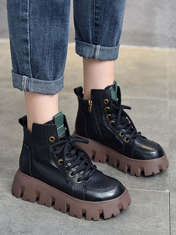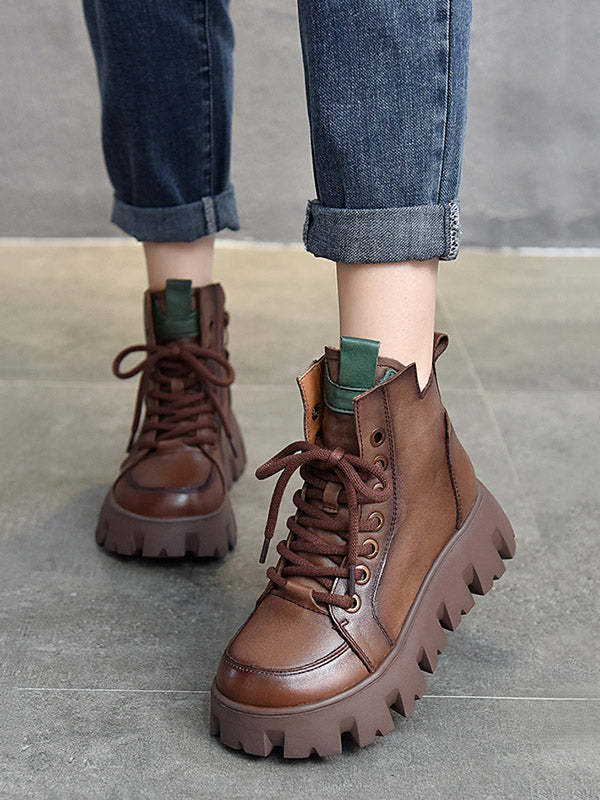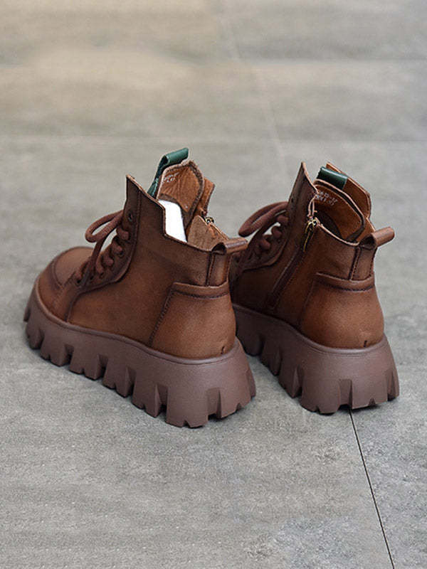 Vintage Cow Leather Platform Shoes Boots