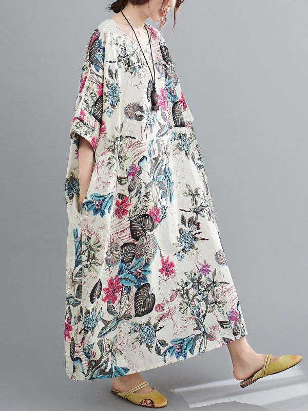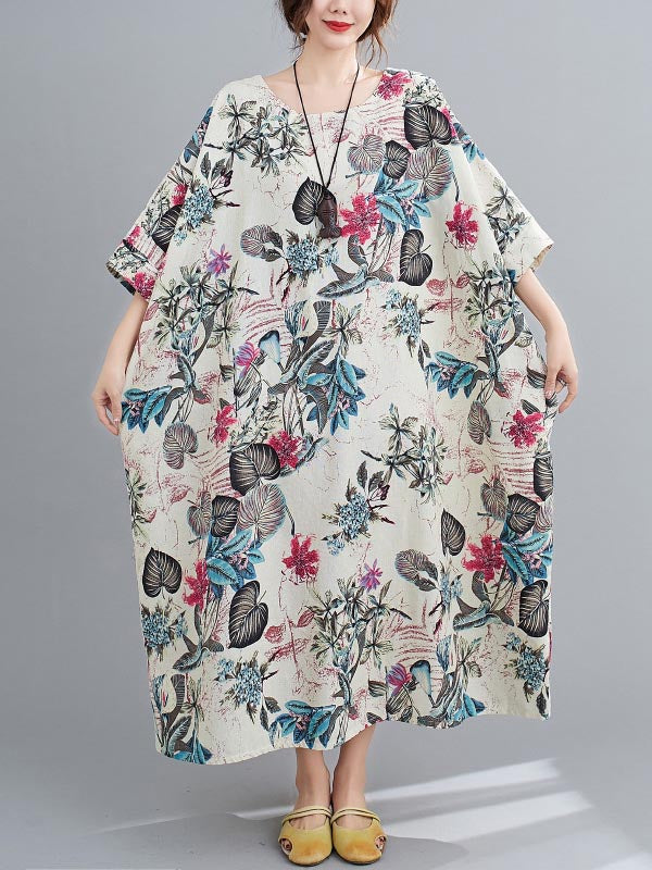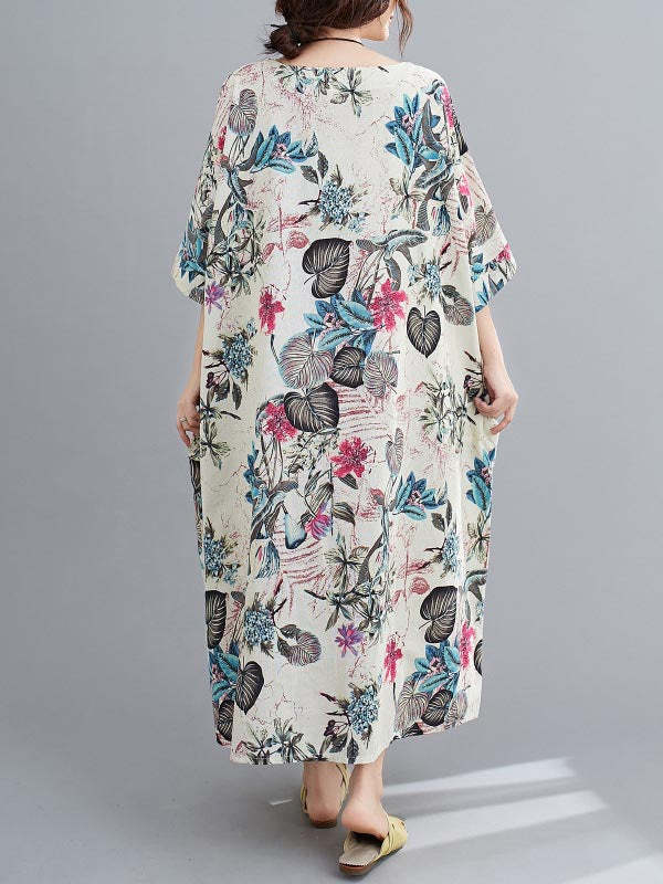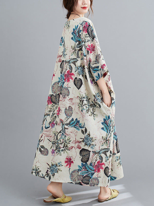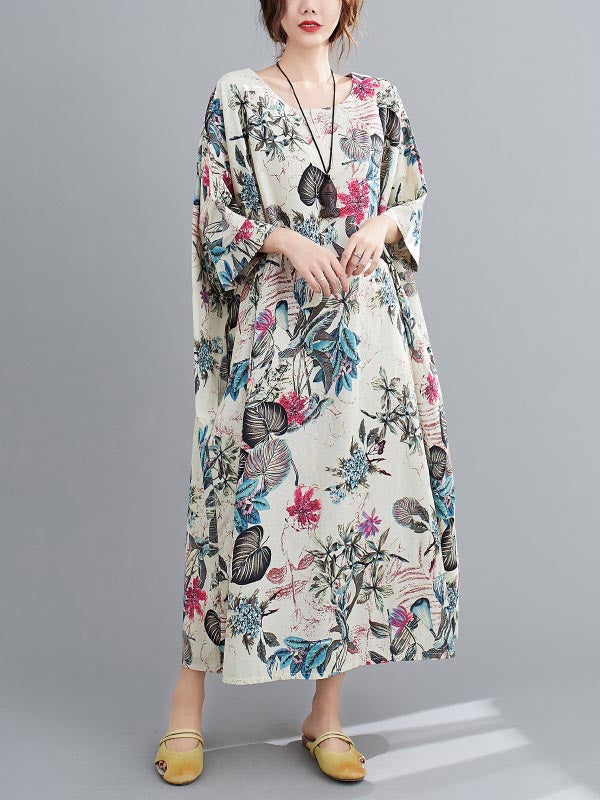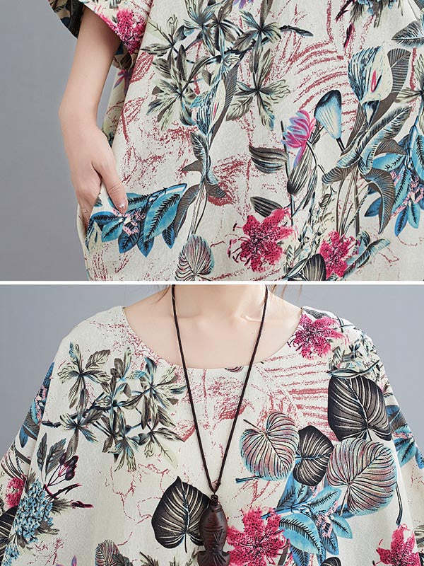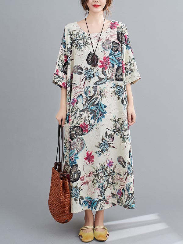 Vintage Floral Round-Neck Dress