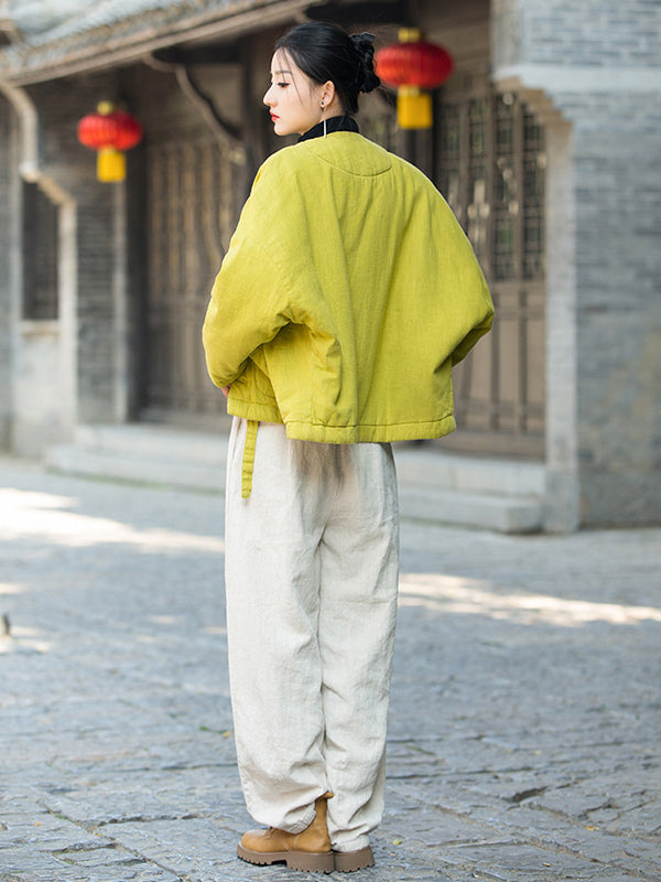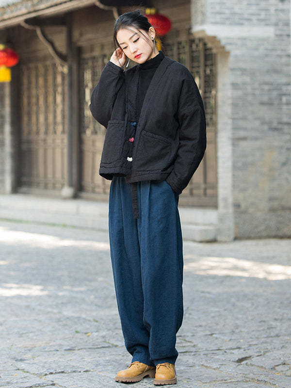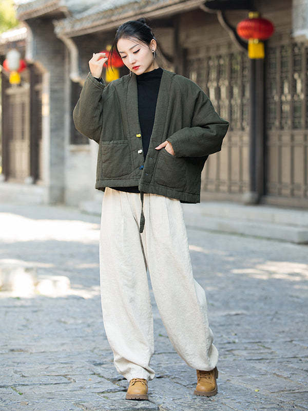 Vintage Loose Long Sleeves Keep Warm V-Neck Padded Coat