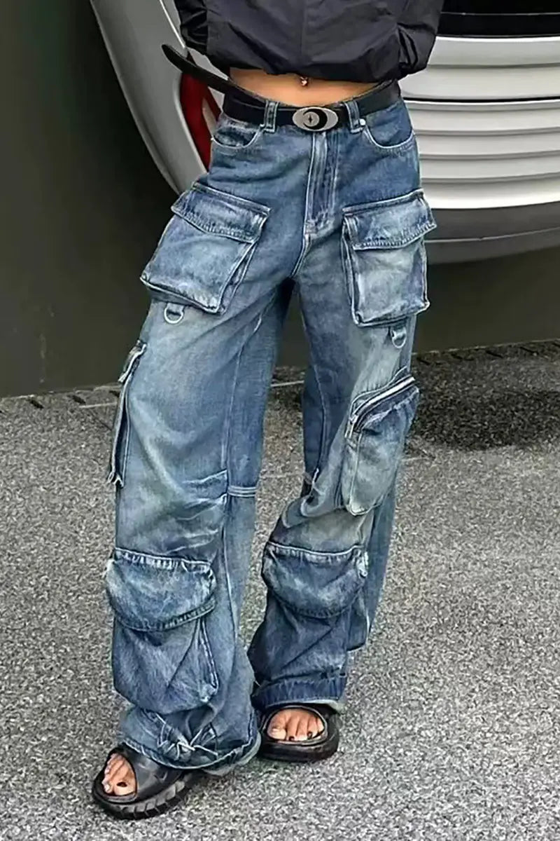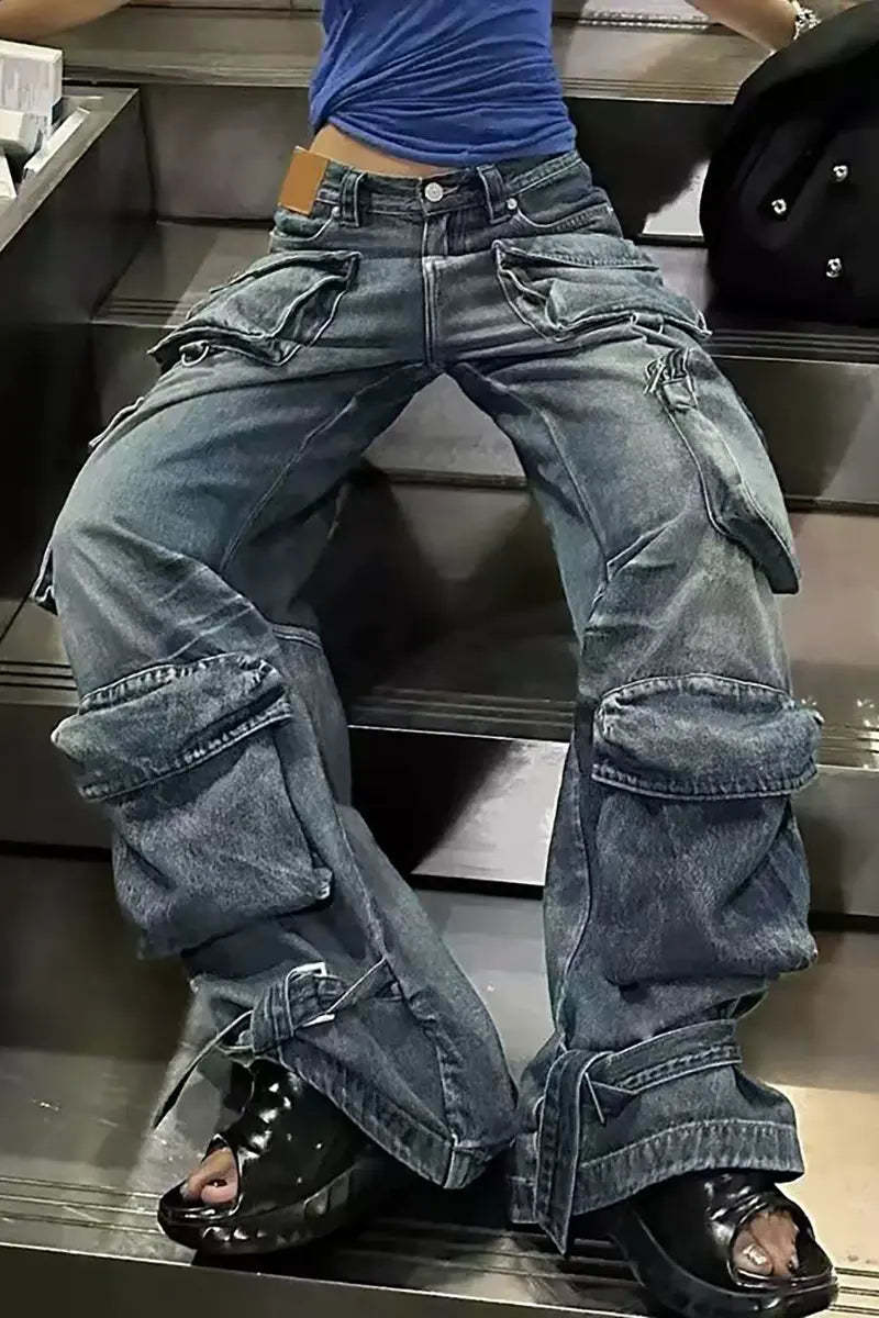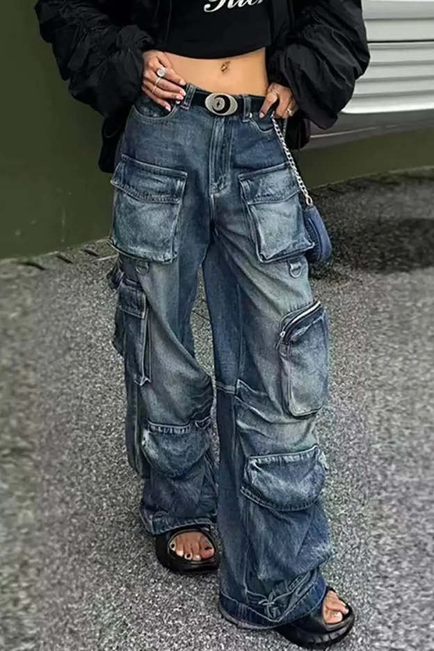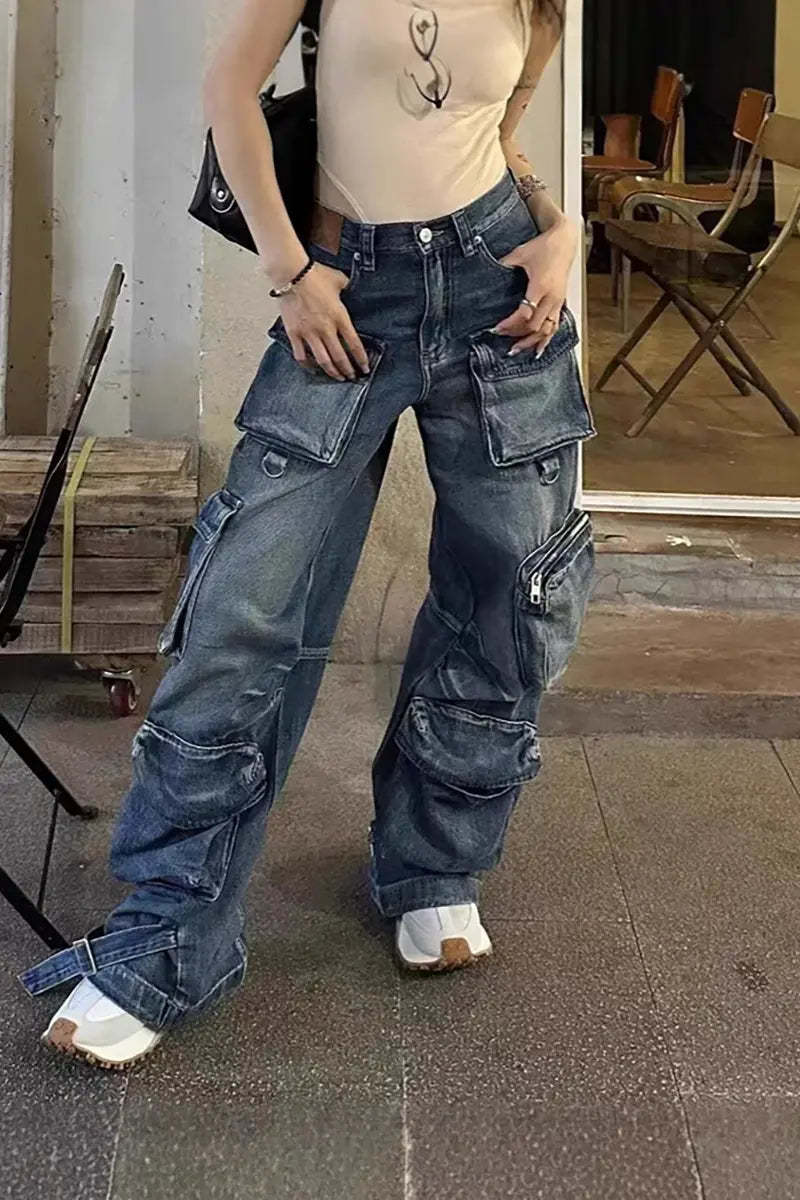 Embrace the street-style vibes with these vintage-inspired, multi-pocket denim work pants. Designed for the modern, confident woman, these pants feature a relaxed, wide-leg silhouette and a distressed, washed finish for a cool, worn-in look. The functional multi-pocket design enhances both style and practicality, while the high-quality denim ensures comfort throughout the day. Perfect for layering in autumn and winter, these pants offer a bold statement on any street corner.