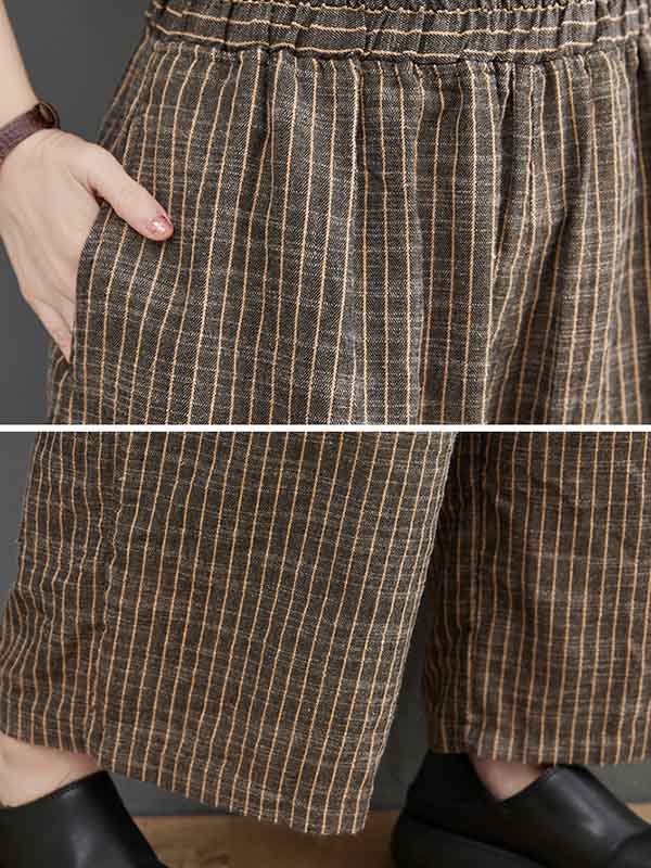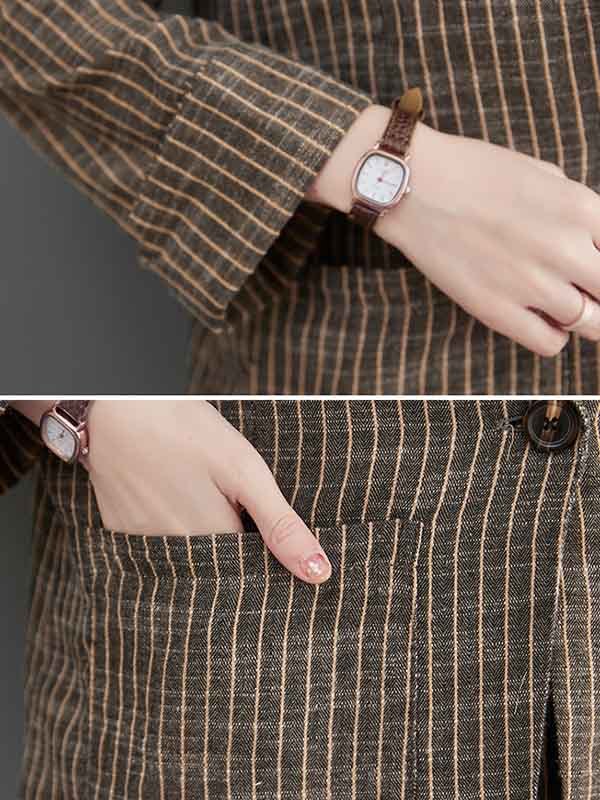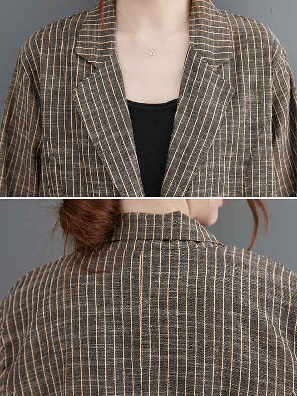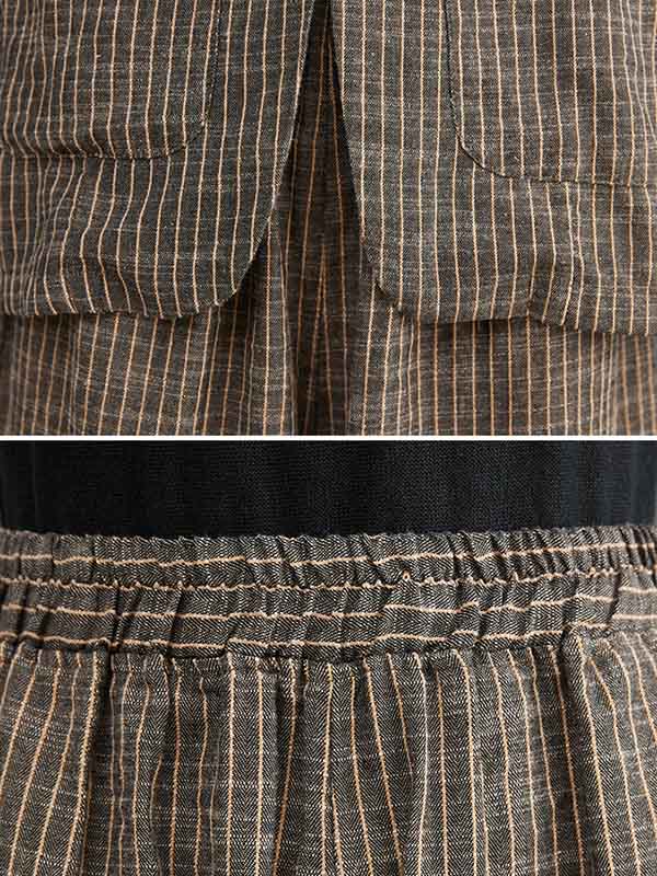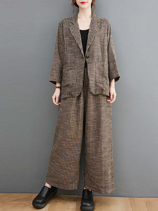 Vintage Ramie Cotton Notched Collar One Button Suits+Column Pants 2 Pieces Set
