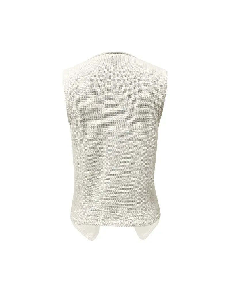 White V Neck Split Hem Knit Buckle Vest