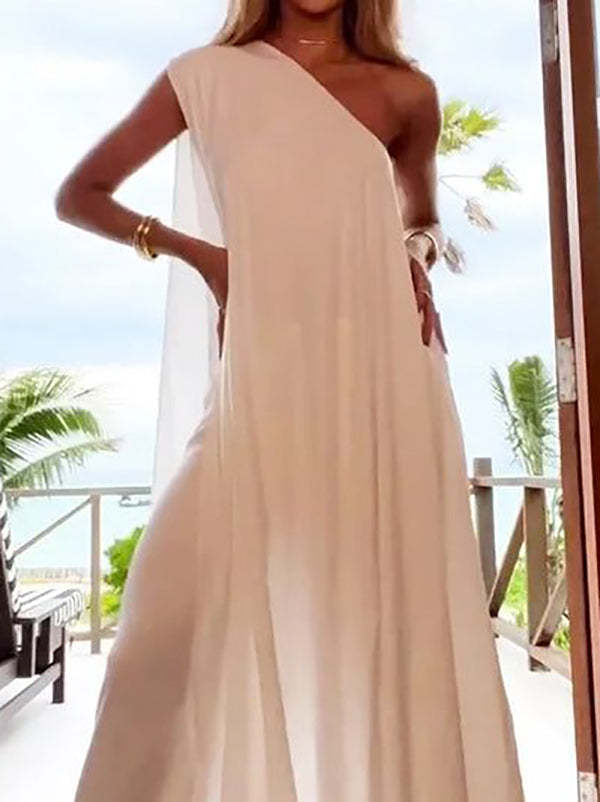 Wide Leg Asymmetric Solid Color One-Shoulder Jumpsuits
