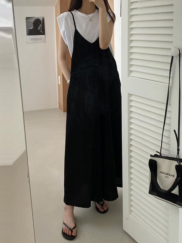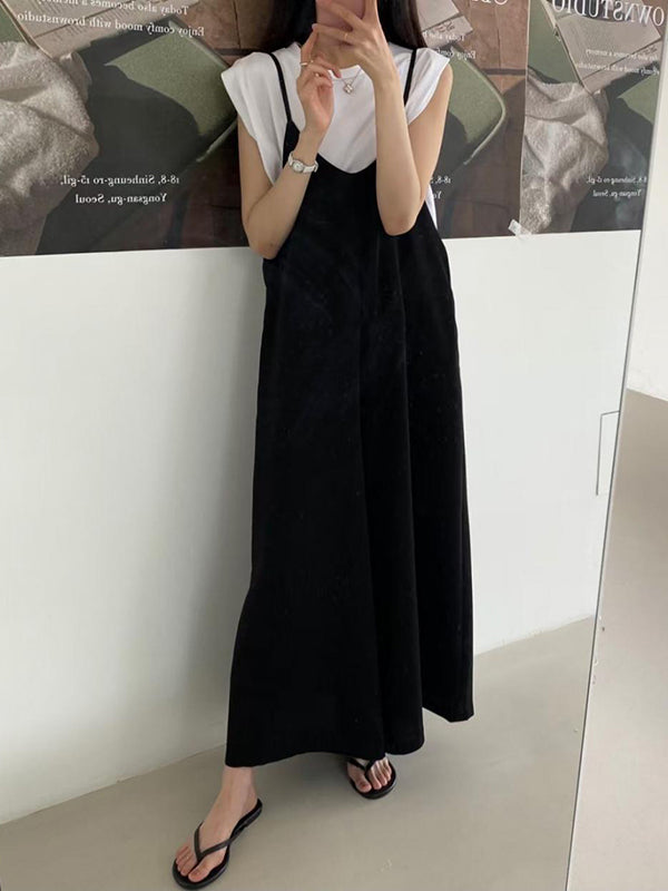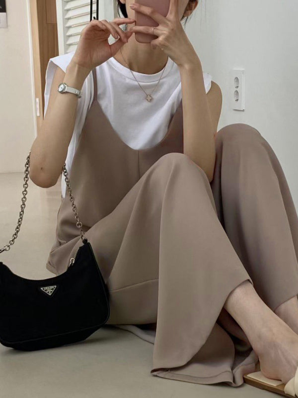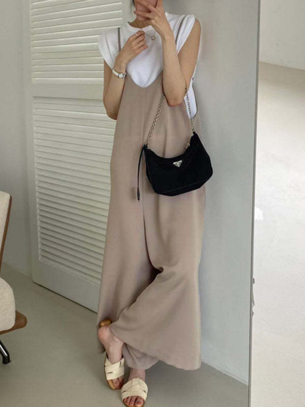Wide Leg Solid Color Spaghetti-Neck Overalls